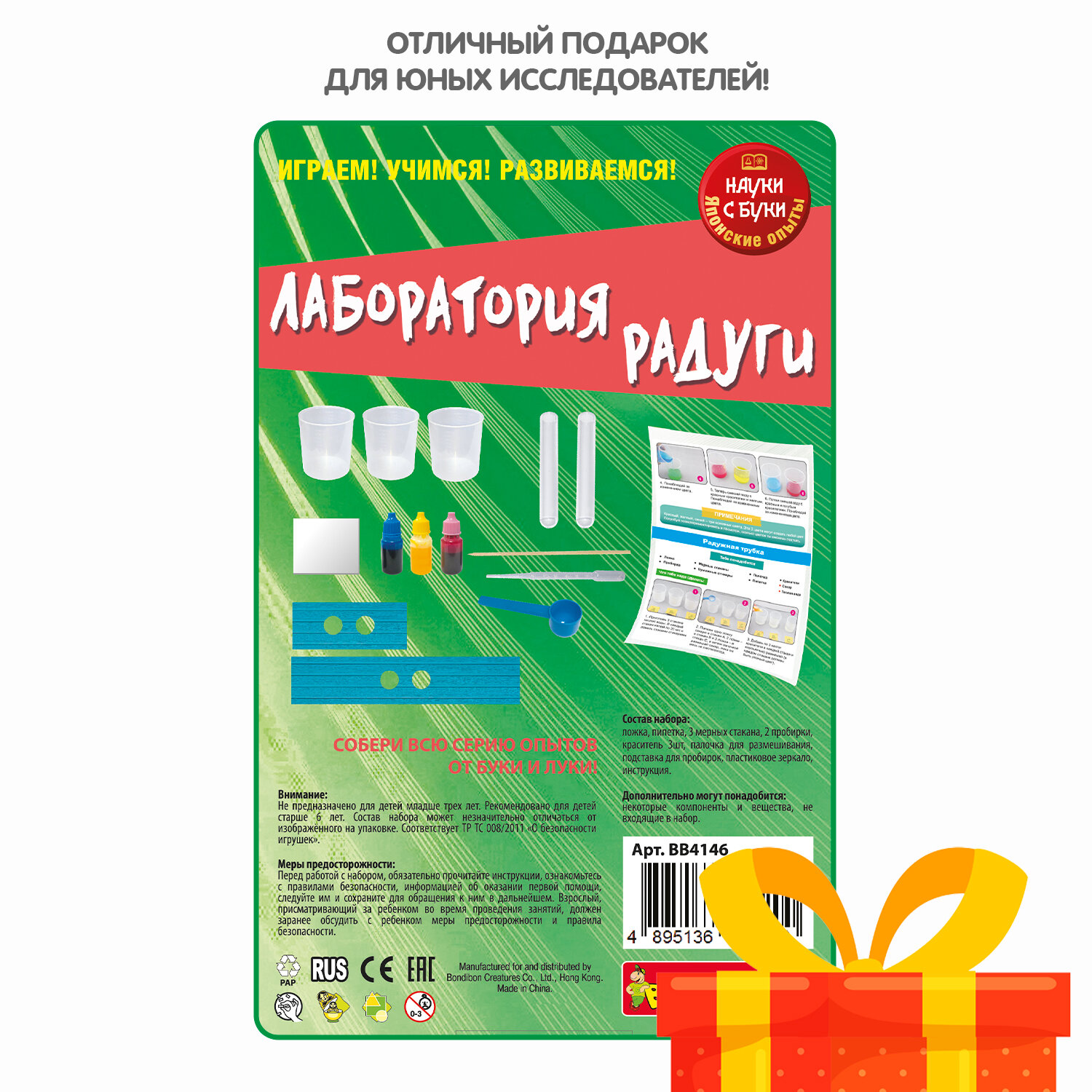 На сегодняшний день товар «Набор Японские опыты Лаборатория радуги (ВВ4146) Bondibon» можно купить с кешбеком в 1 магазине: Яндекс.Маркет
