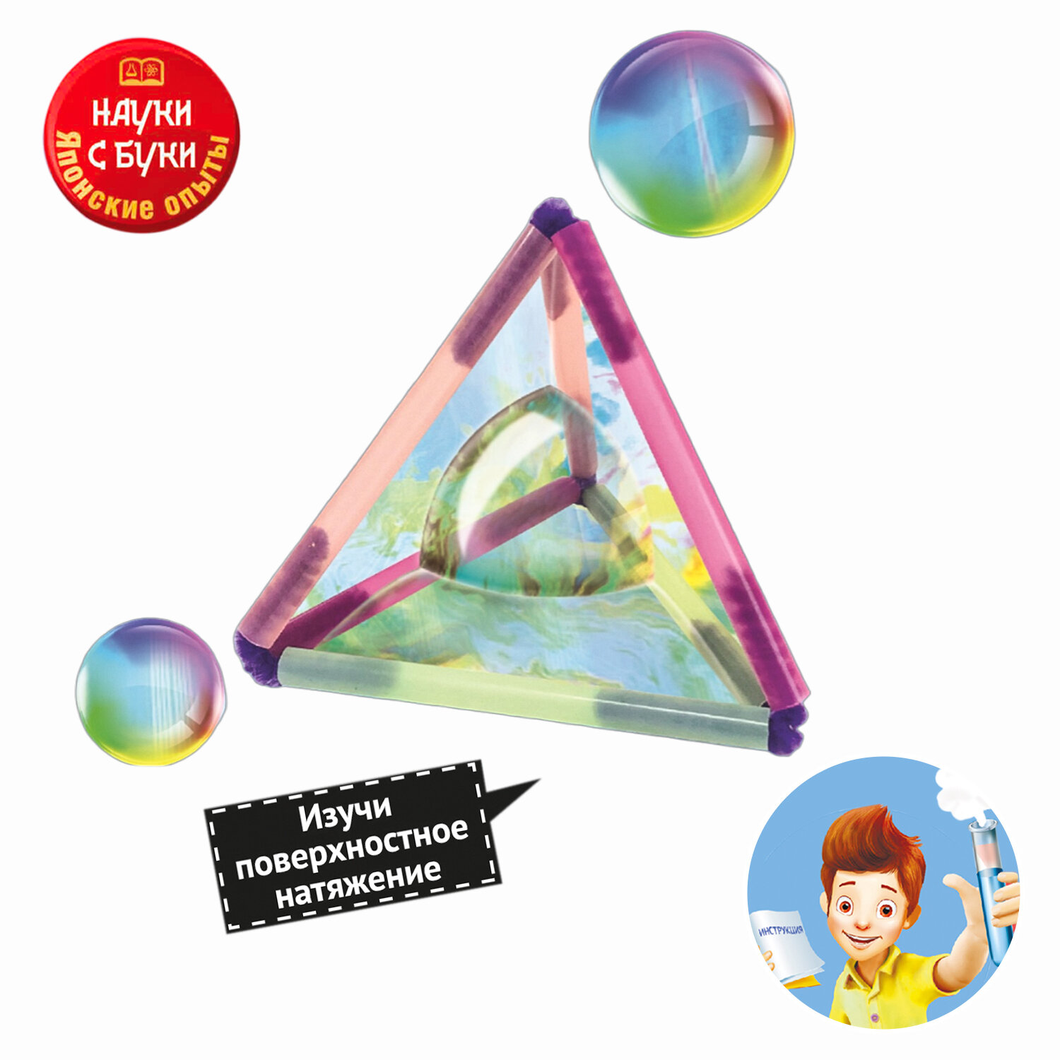 Набор для опытов Магические пузыри из серии Японские опыты Науки с Буки позволит сделать юным ученым первые веселые открытия. С этим набором можно изучить свойства жидкостей и сделать оригинальные фигурные мыльные рамки, надуть гроздь из пузырей и создать даже 3Д пузырь!