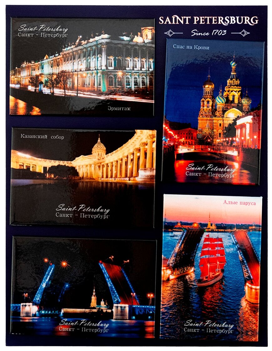 Набор № 11 "СПб магниты закатные" (5 штук) на черной подложке Символик