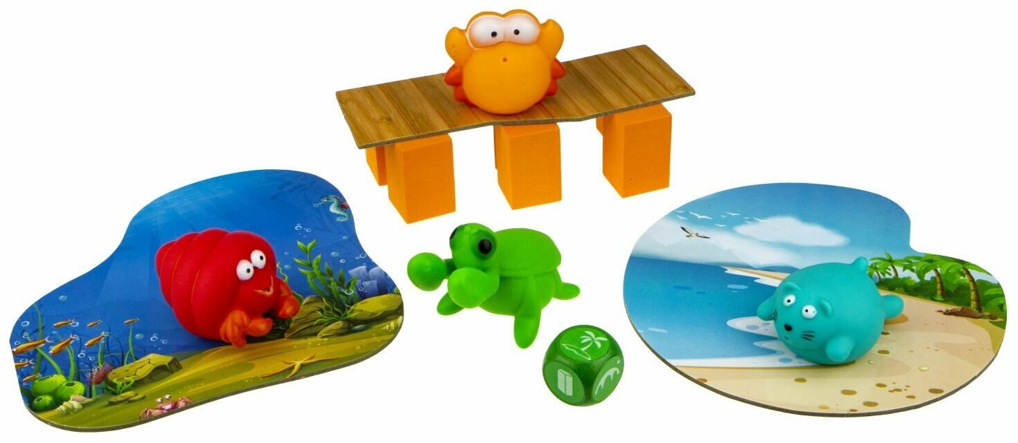 Комплектность: фигурки, изображающие животных - 4 шт., опоры для моста - 6 шт., кость игральная - 1 шт., игровое поле - 3 шт.