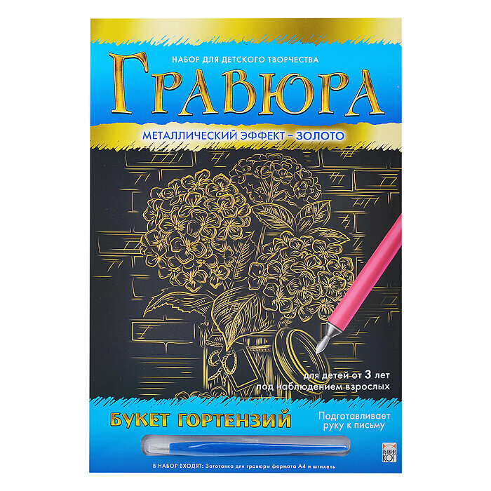 Набор для творчества, позволяющий ребёнку развивать художественное воображение. Техника гравюры очень проста и понятна - на заготовке нарисованы контуры. Просто нанесите все штрихи с помощью специального штихеля и получите собственную уникальную гравюру!