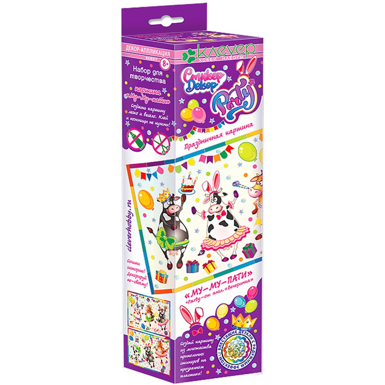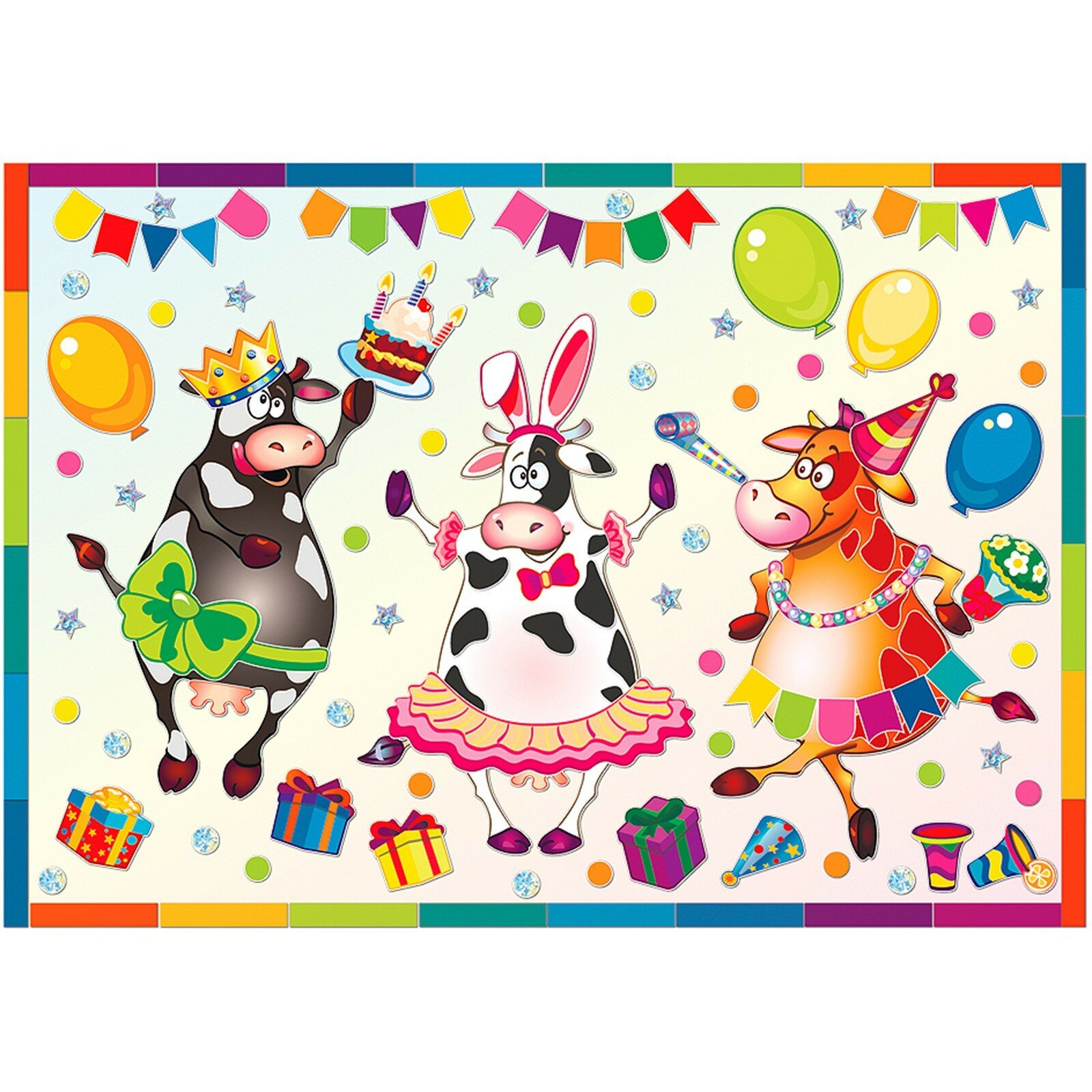 Работа с набором «Му-му-пати» позволит ребёнку от 8 лет и взрослому создать картину с прикольными веселящимися коровами в яркой атмосфере праздника. Картина не сложна в исполнении, позволяет фантазировать,- играть и одновременно творить: цветные и голографические детали наклеиваются на прозрачный пластик по образцам на упаковке или по своему вкусу - варианты не ограничены!
