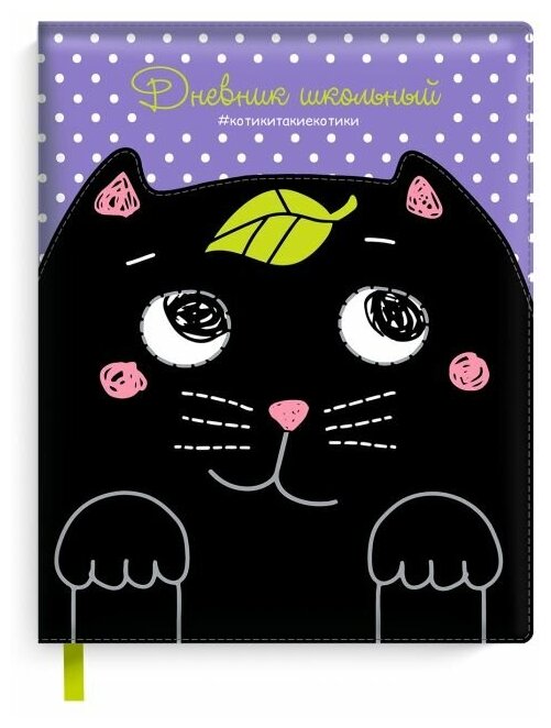 Дневник школьный "Кот черный на сиреневом" (А5 48 листов твердый переплет иск. кожа) (48587) Феникс+