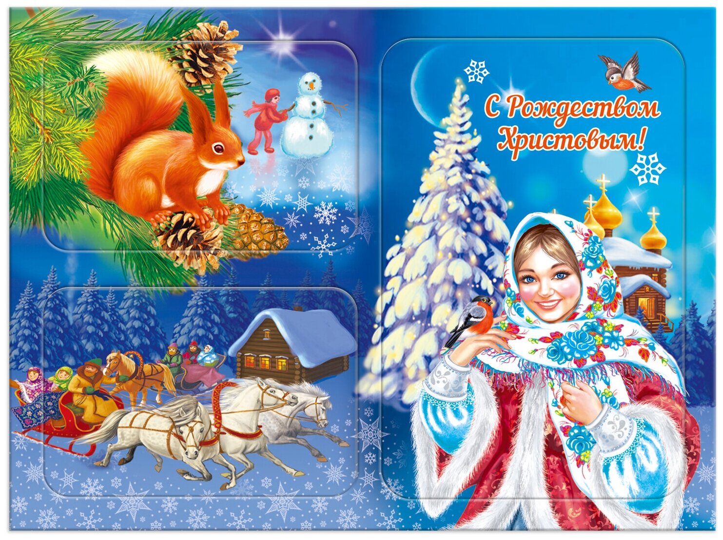 Набор магнитов на изолоне "С Рождеством Христовым! Девушка. Белка. Тройка" Символик