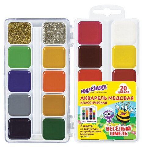 Краски акварельные "ЮНЛАНДИЯ" 18 + 2 цвета (191327) Brauberg