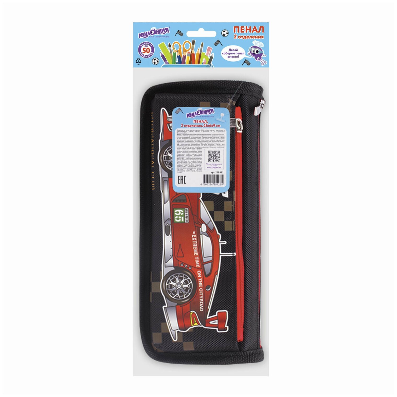 Пенал ЮНЛАНДИЯ предназначен для хранения школьных принадлежностей, вмещает до 50 канцелярских предметов стандартного размера. Удобный и вместительный пенал не займет много места в школьном ранце или рюкзаке.
