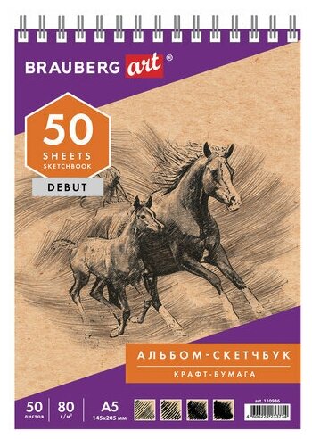 Скетчбук BRAUBERG ART "DEBUT" предназначен для эскизов и графики. Подходит для работы с широким спектром графических материалов (уголь, соусы, карандаши и прочие).