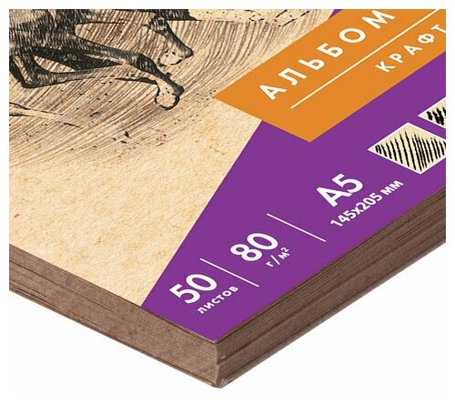 Привлекательная обложка выполнена из импортного мелованного картона. Внутренний блок - 50 листов специальной художественной гладкой крафт-бумаги коричневого оттенка плотностью 80 г/м2, т.е. 50 возможностей воплотить свою задумку! Листы удобно скреплены спиралью - это позволяет переворачивать их на 180 градусов. Задняя подложка жесткая, что позволит делать зарисовки и наброски "на весу". Удобный формат размером 145?205 мм поместится даже в небольшую сумку.