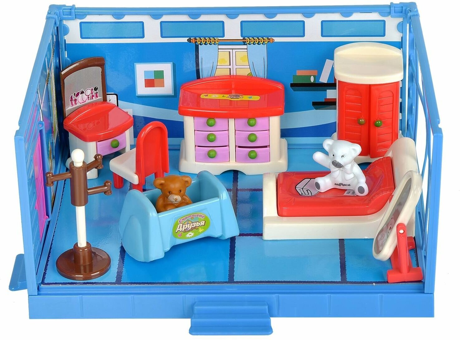 C модульной спальной комнатой из серии "Счастливые друзья" бренда ABtoys у ребенка появится место, где смогут отдыхать особо отличившиеся фигурки. К набору прилагается мебель, которая добавит уюта и маленькие аксессуары. Также в комплекте имеются фигурки животных. Ребенок сможет играть в разные сюжетно-ролевые игры, которые очень хорошо развивают детское воображение.