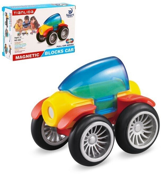 В комплект этого набора-конструктора входит машинка. Машинка разбирается на несколько пластмассовых частей, а ее серединный блок содержит внутри себя магнит. С его помощью к ней можно легко примагнитить другую машинку, подойдет любая из серии "Конструктор "Tianlida".