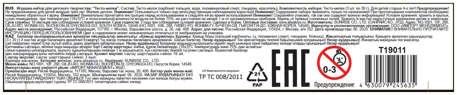 В наборе: тесто 30 г (3 цвета), инструкция.