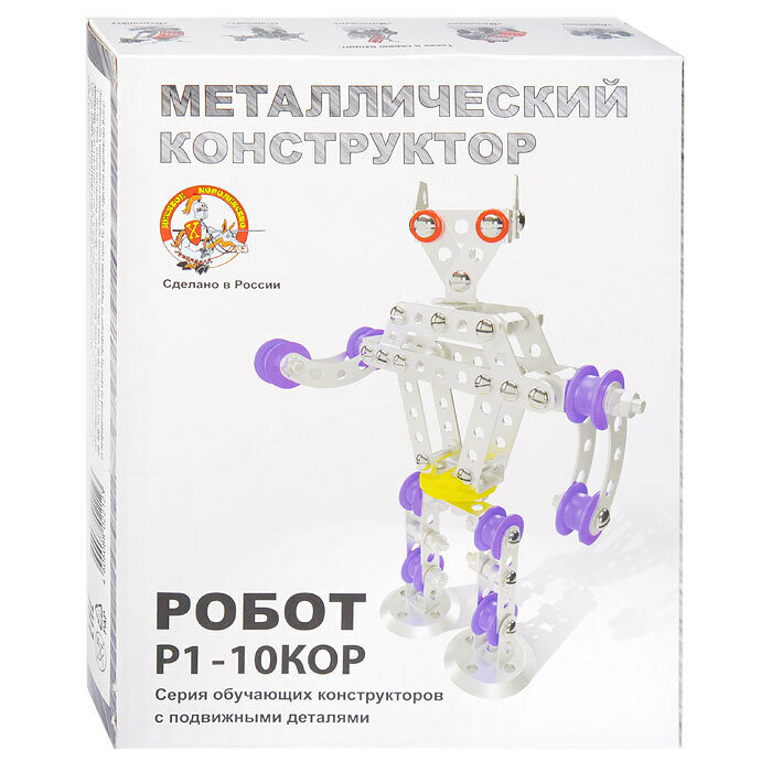 Соберите своего первого робота с обучающим набором металлического конструктора «Робот Р1»! В финале сборки получается подвижная модель робота высотой 18 см.
