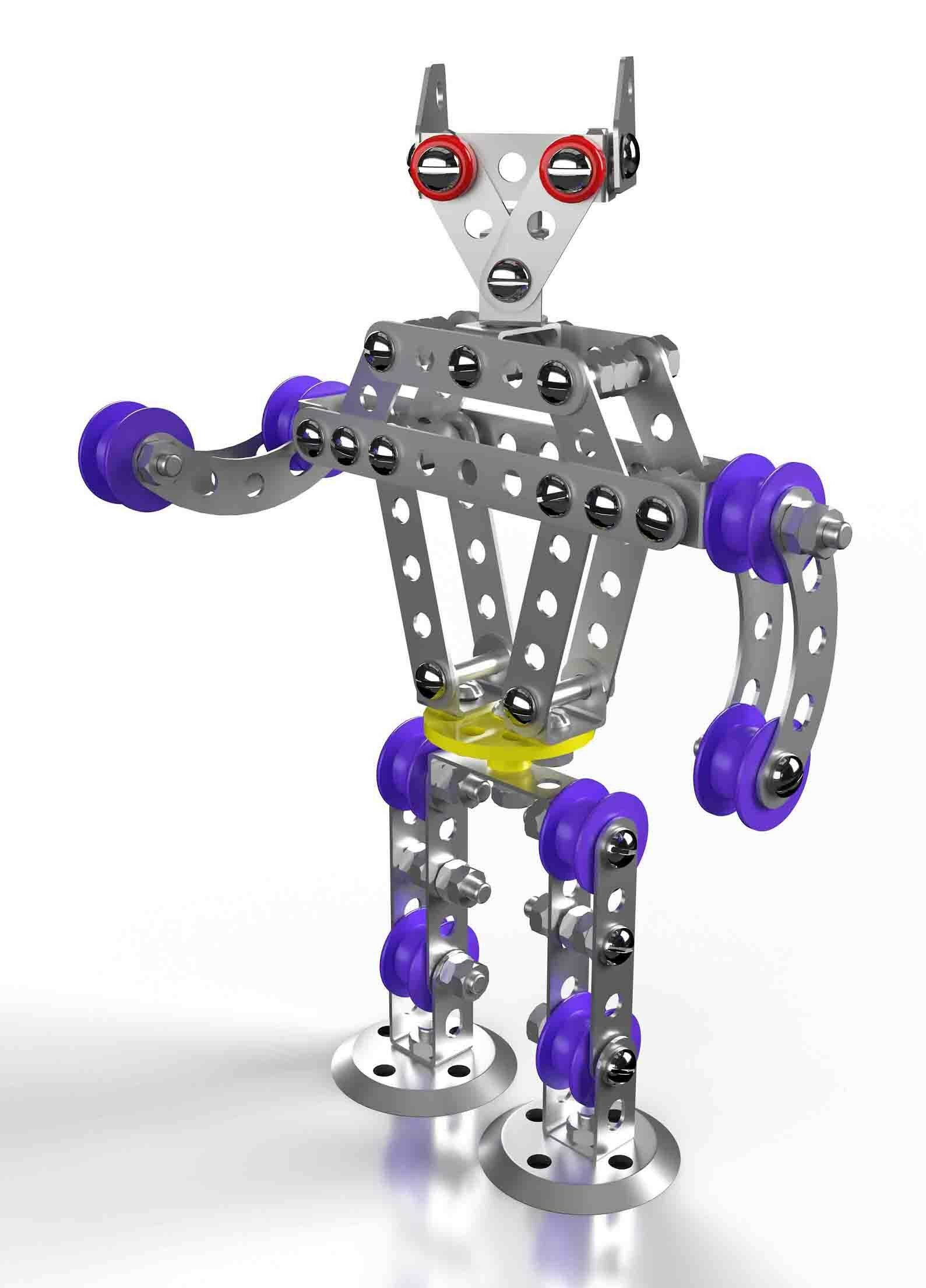 С помощью данного набора ребёнок может своими руками собрать игрушку-робота с подвижными конечностями. Сборка модели не составляет труда, так как в комплекте идёт подробная инструкция со схемой.