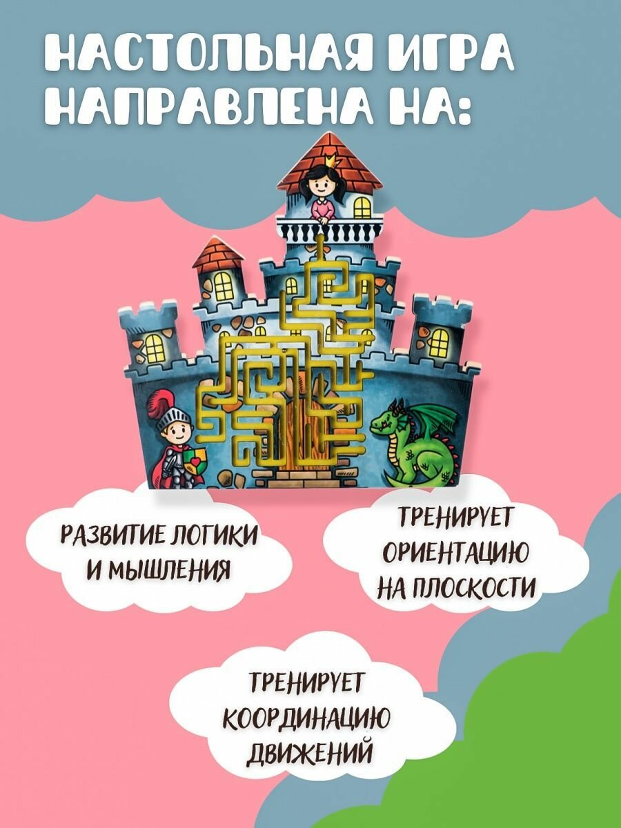 Лабиринт понравился детям сразу же. Дети 4х и 5тм лет по очереди играют в нее. Можно рассказать, что принц должен прийти и спасти принцессу, победить дракона. Ребенок сам придумал себе задание зайти в определенный тупик чтоб принц переночевал перед подвигом.