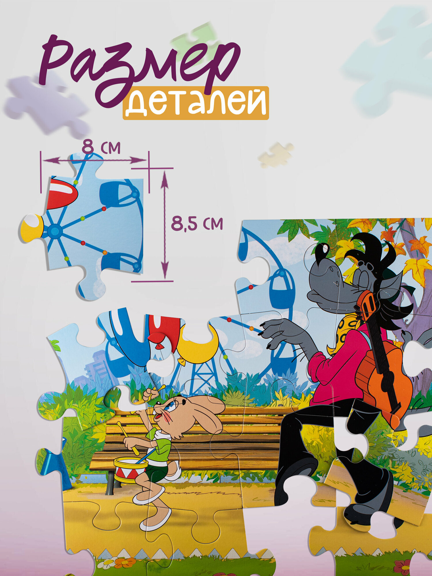 - крупные детали пазла (8х8,5 см);