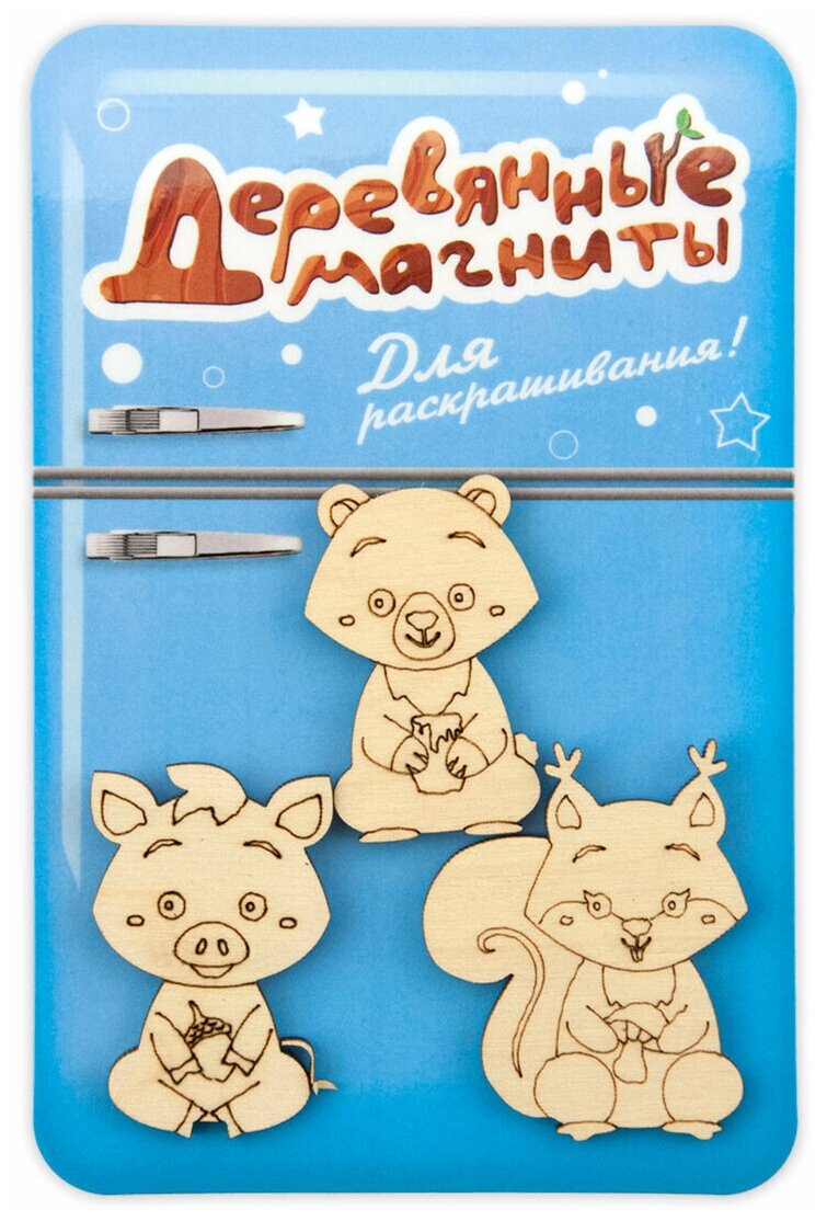 Деревянные магниты для раскрашивания набор №3 "Белочка медвежонок кабанчик" Символик