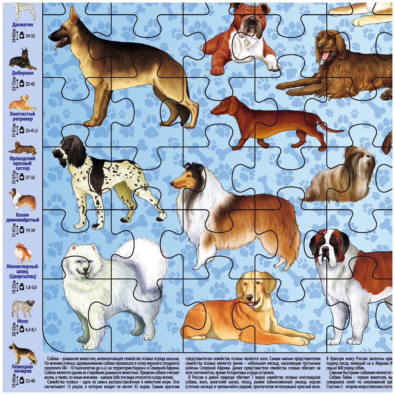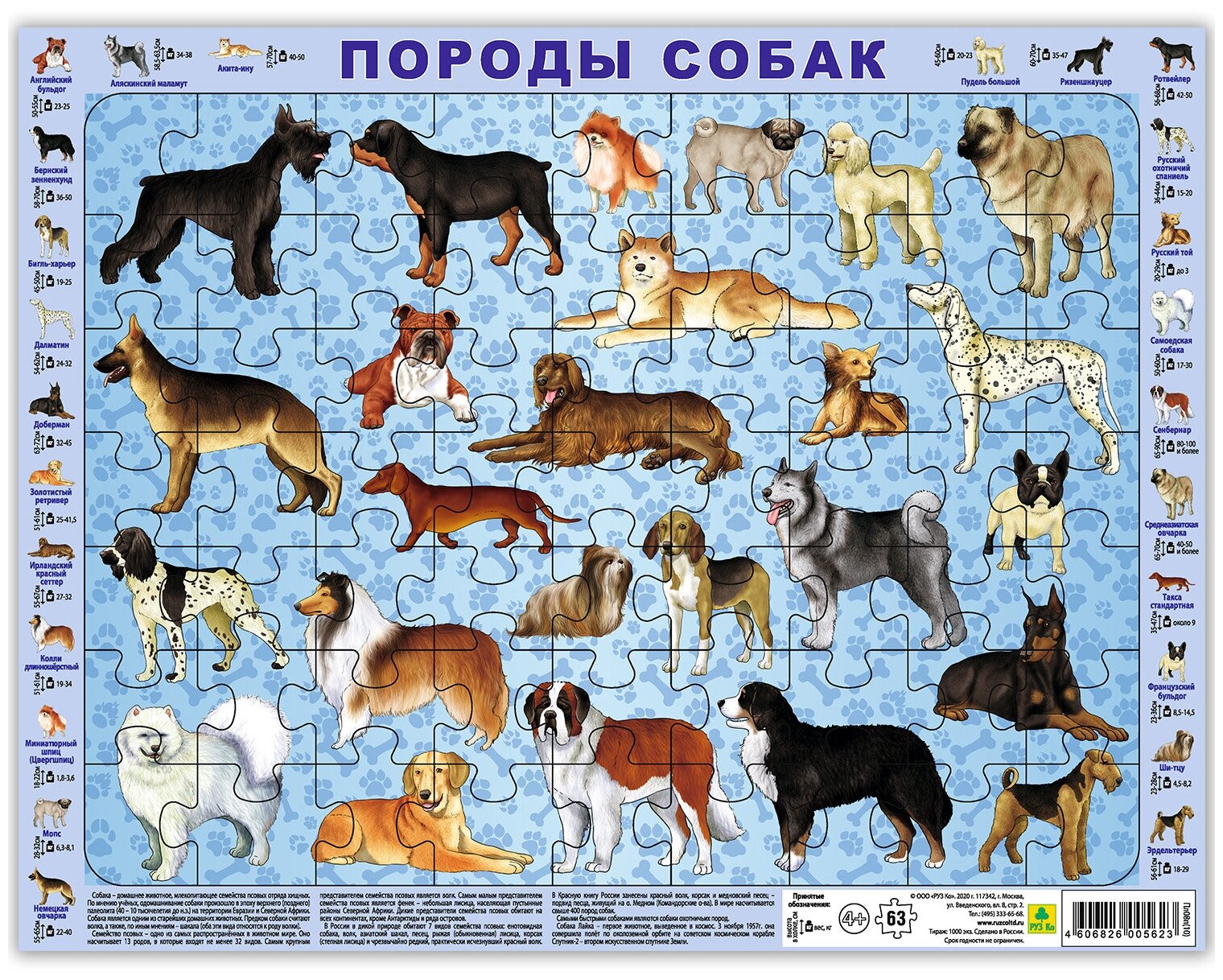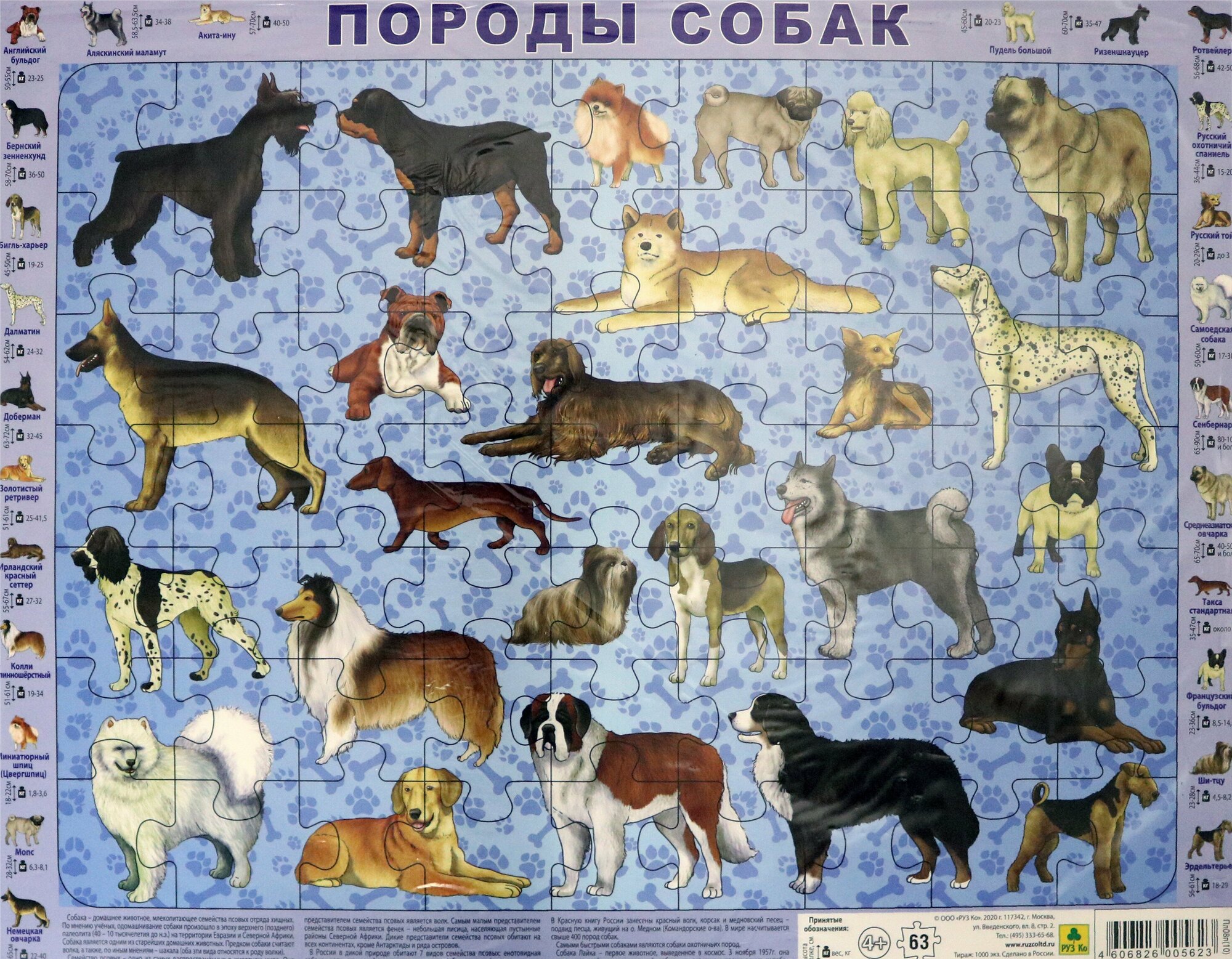 Породы собак. Детский пазл на подложке 63 элемента РУЗ Ко