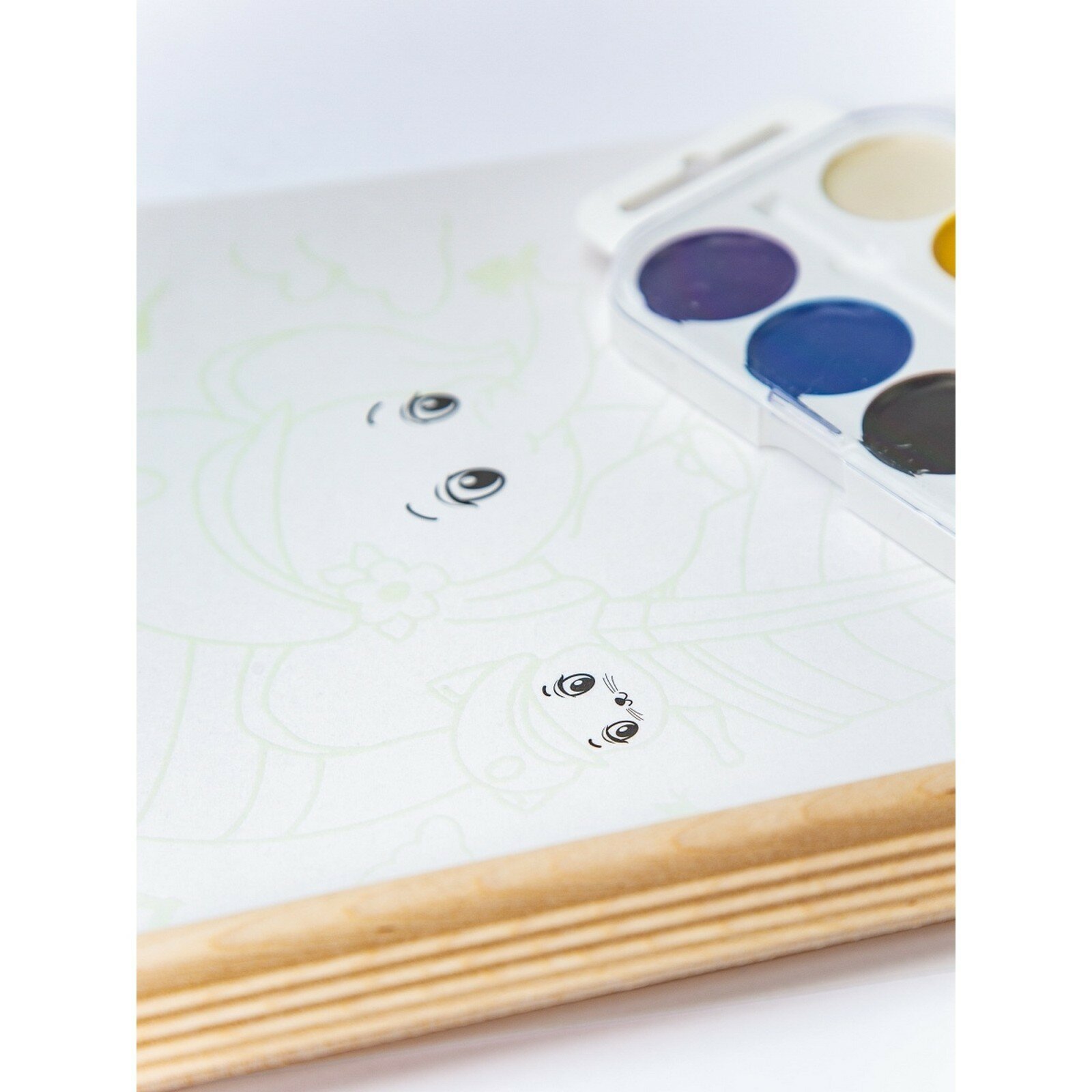 | Состав набора | бумага с нанесенным неоновым контуром; краски акварельные; кисточка; краска акриловая для рамки; бумажное паспарту; деревянная рамка |