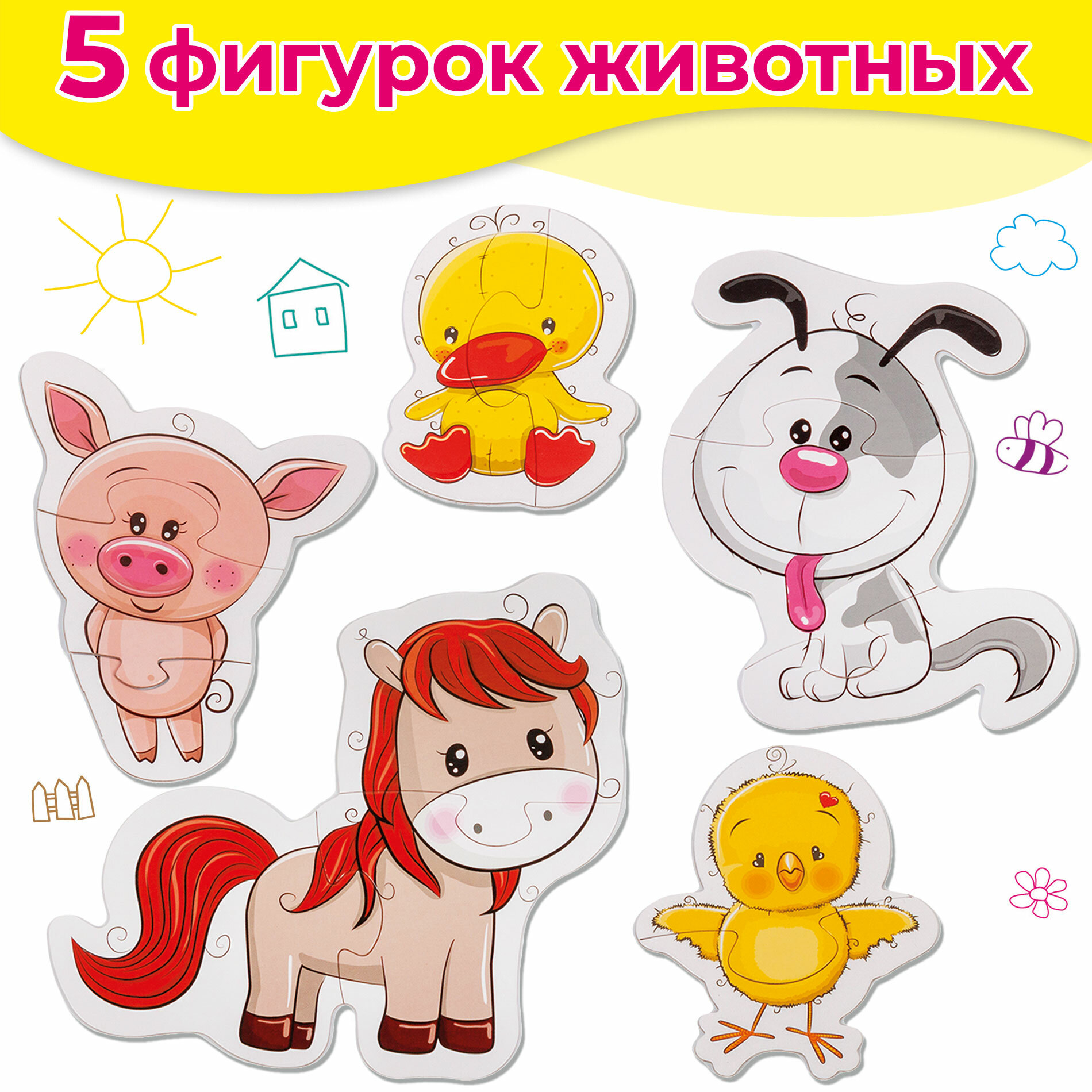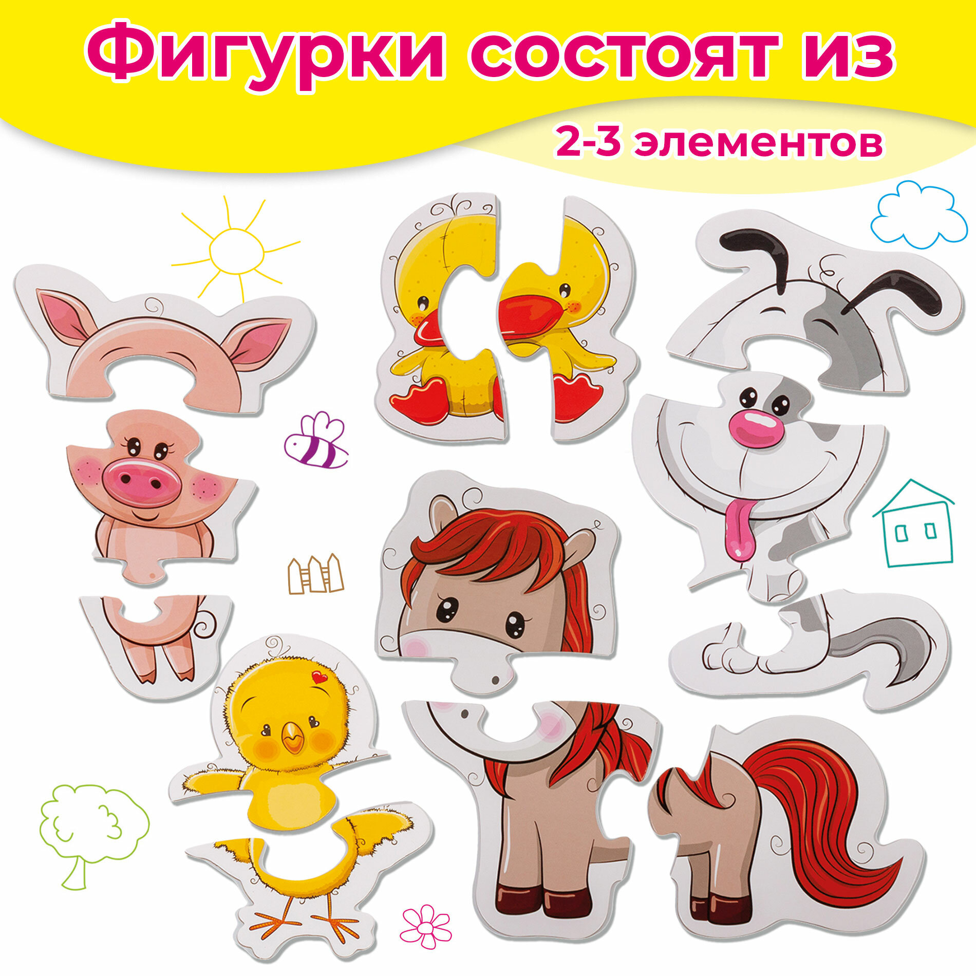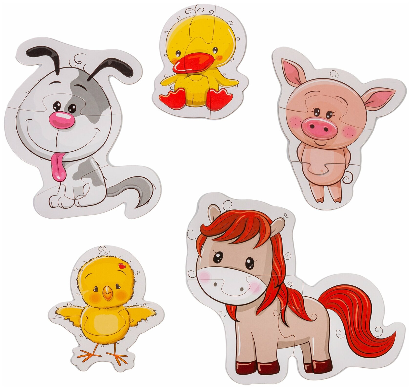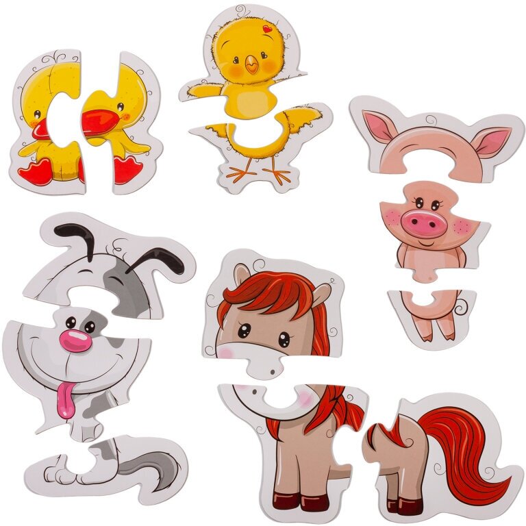 В НАБОРЕ 5 ФИГУРОК ЖИВОТНЫХ, РАЗДЕЛЁННЫХ НА 2-3 ЭЛЕМЕНТА. ЯРКИЕ УЗНАВАЕМЫЕ КАРТИНКИ ПРИВЛЕКУТ ВНИМАНИЕ МАЛЫША, А КРУПНЫЕ ДЕТАЛИ ИЗ ПЛОТНОГО КАРТОНА ПОМОГУТ А В РАЗВИТИИ МЕЛКОЙ МОТОРИКИ.