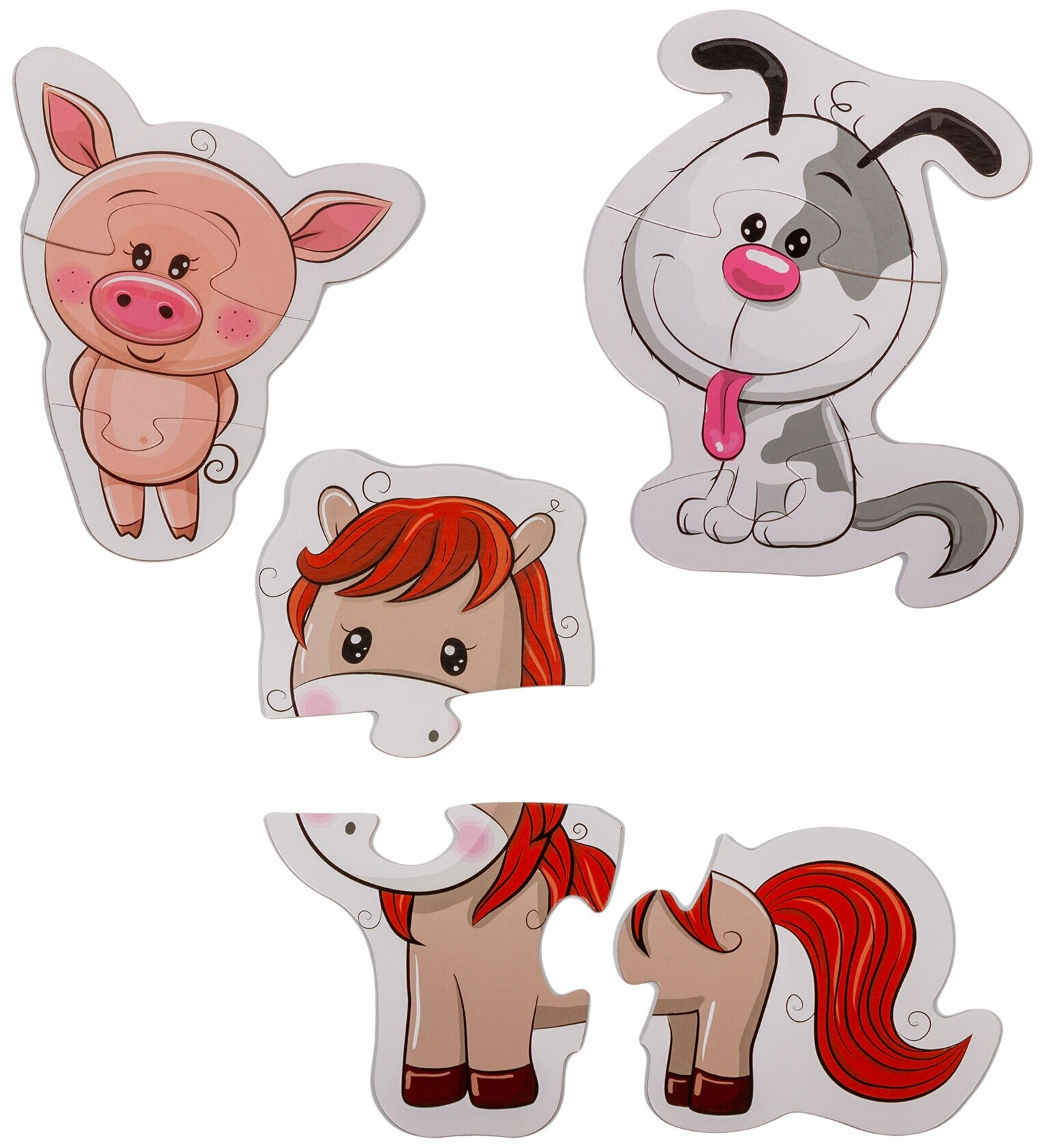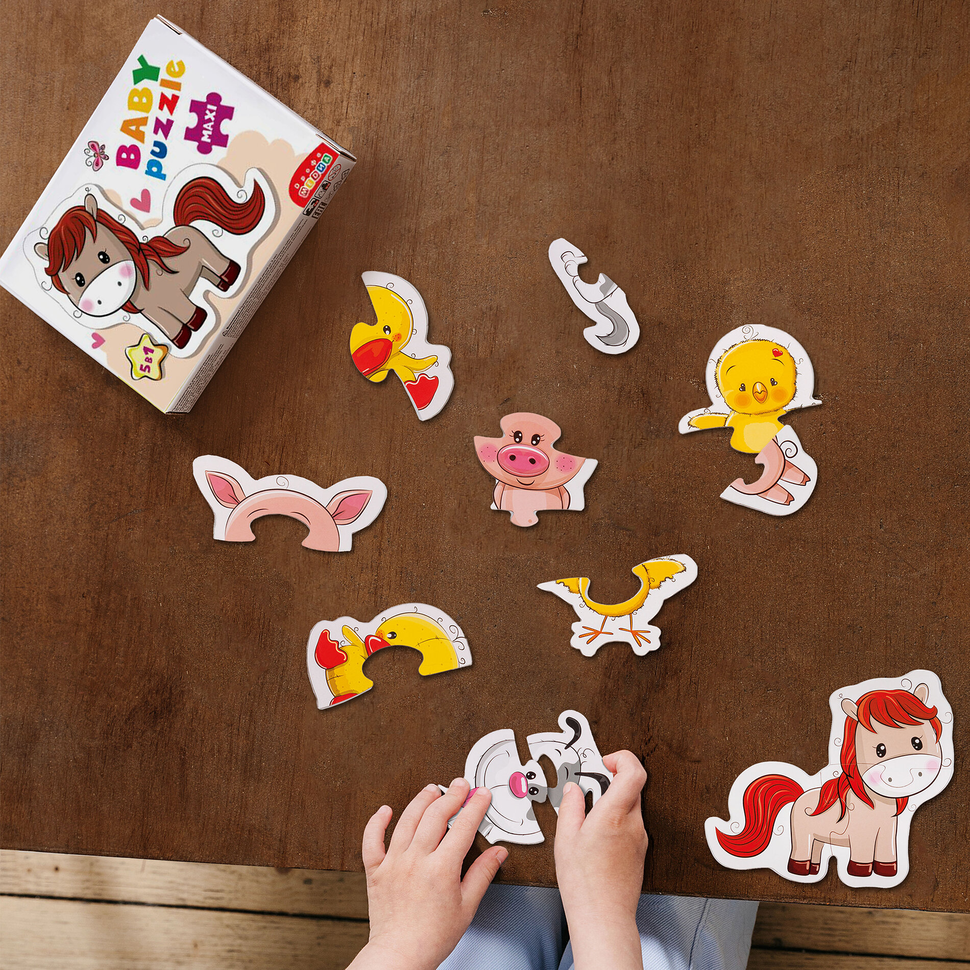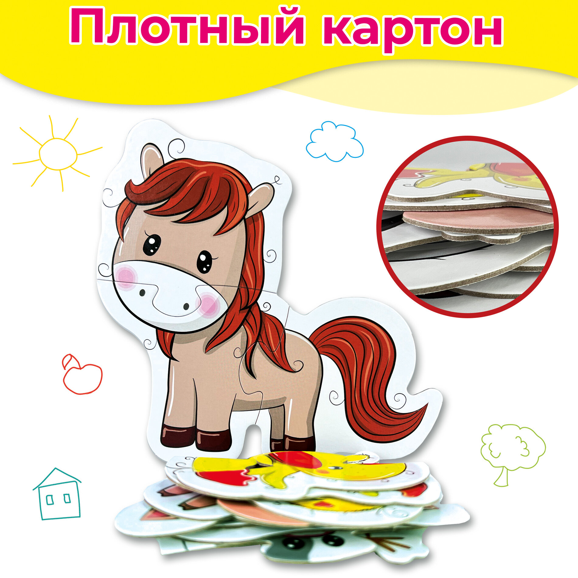 В НАБОРЕ 5 ФИГУРОК ЖИВОТНЫХ, РАЗДЕЛЁННЫХ НА 2-3 ЭЛЕМЕНТА. ЯРКИЕ УЗНАВАЕМЫЕ КАРТИНКИ ПРИВЛЕКУТ ВНИМАНИЕ МАЛЫША, А КРУПНЫЕ ДЕТАЛИ ИЗ ПЛОТНОГО КАРТОНА ПОМОГУТ А В РАЗВИТИИ МЕЛКОЙ МОТОРИКИ.