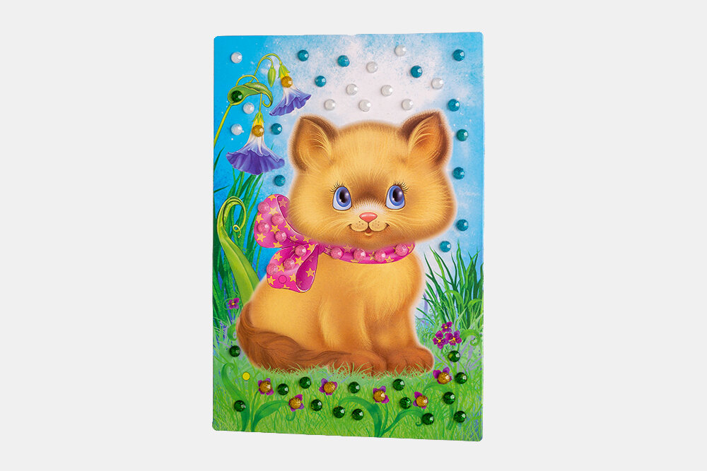 Чудесная картинка с милым пушистиком, украшенная мерцающими глиттерными кристалликами, обязательно понравится ребёнку! Работать очень легко: нужно аккуратно приклеить кристаллики на картинку-основу, ориентируясь по цветам. В процессе работы развивается мелкая моторика, усидчивость и художественный вкус.