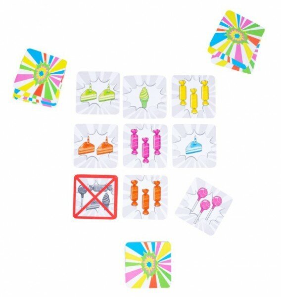 Следи за количеством, цветом и видом сладостей. Называй общее свойство, как только увидишь совпадение на 3 картах - забирай вкусняшки в победную кучу!