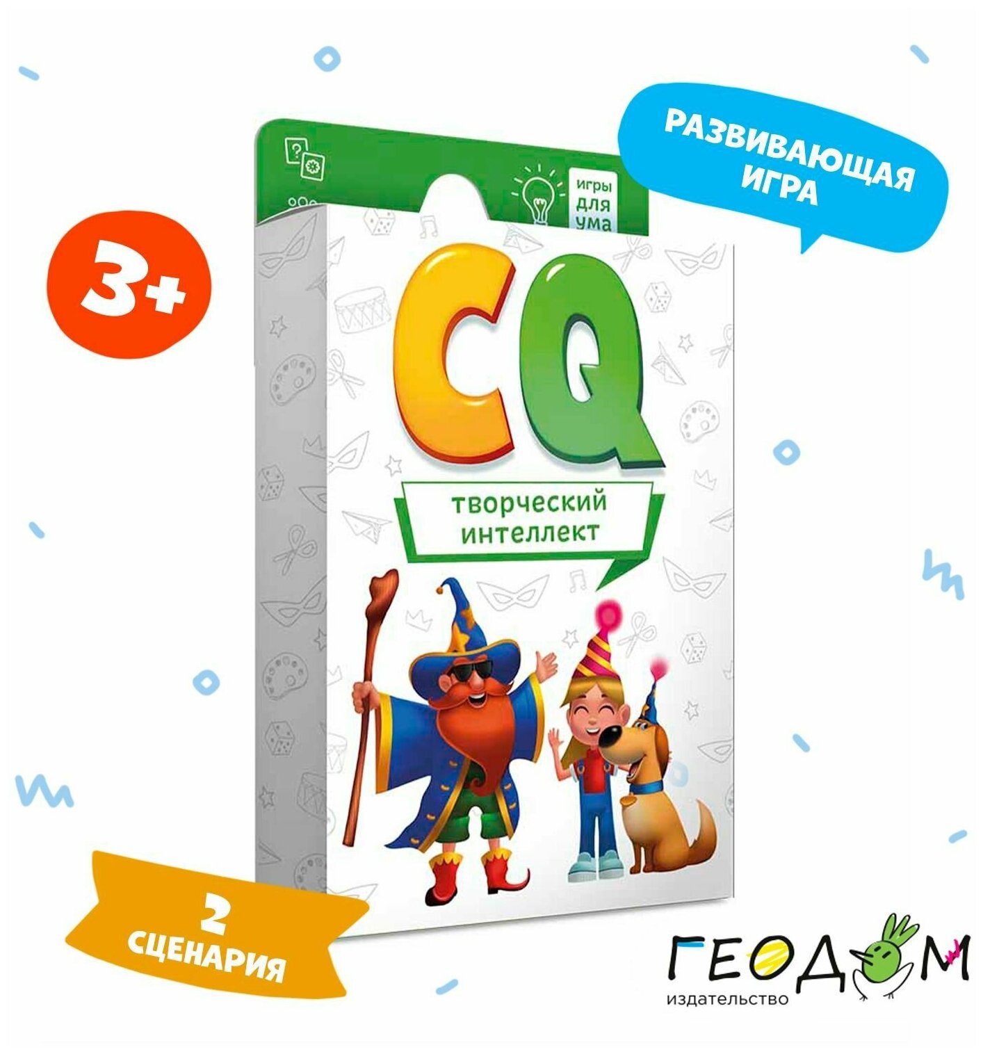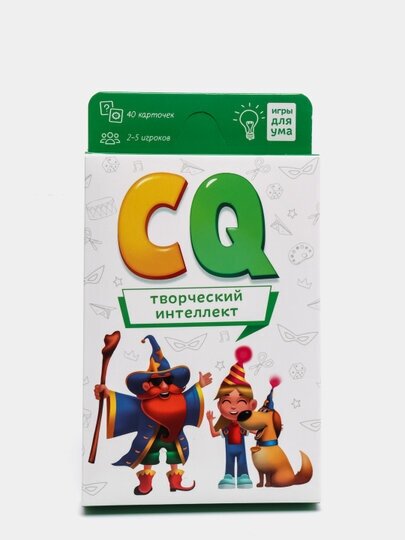 CQ Творческий интеллект- игра, которая способствует развитию фантазии, ассоциативного мышления и актёрского мастерства. С помощью этой карточной игры дети получат уникальную возможность самовыражения, выявления скрытых талантов в игровой шуточной форме.