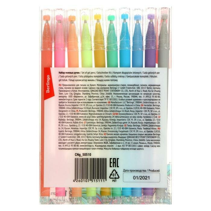 Ручки гелевые 10 цветов "Brilliant Glitter" (CNg_50510) Berlingo
