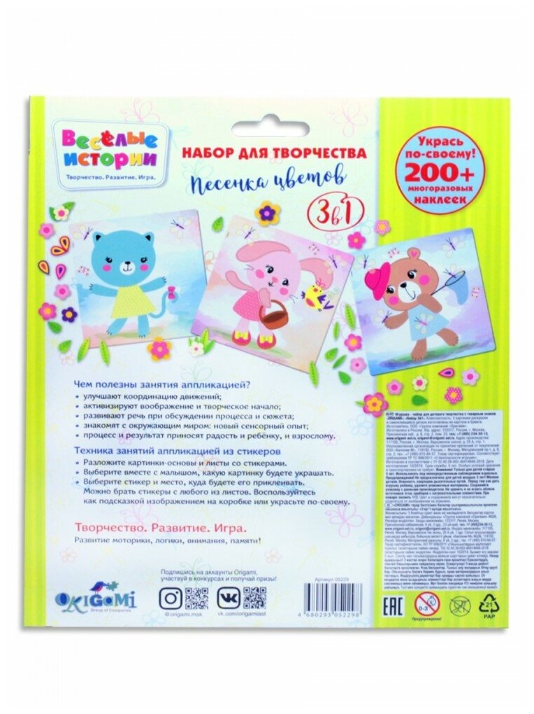 На сегодняшний день товар «Набор для творчества 3 в 1. Аппликация "Песенка цветов" (05229) ОРИГАМИ» можно купить с кешбеком в 1 магазине: Яндекс.Маркет