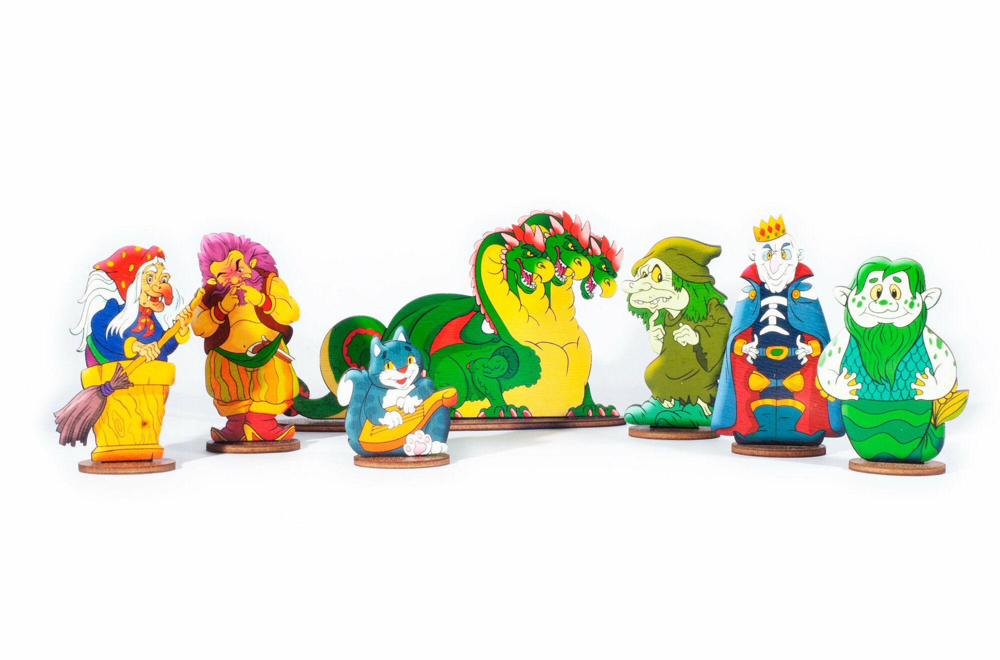 В состав набора входят 7 фигурок отрицательных сказочных персонажей на подставках.