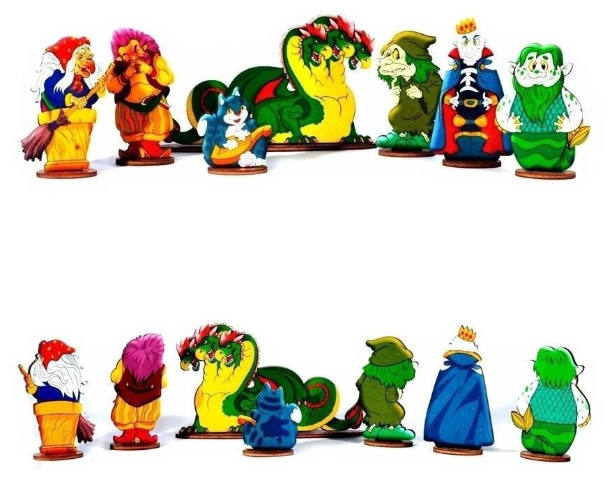 Фигурки выполнены из фанеры, окрашены с двух сторон. Краска нанесена непосредственно на дерево (не пленка), что делает рисунок долговечным. Такие фигурки можно использовать в различных сюжетных играх, при инсценировке сказок.