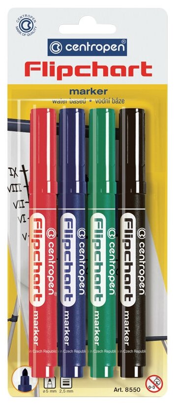 Набор маркеров для флипчартов 4 штуки 25 мм. (8550/04) CENTROPEN