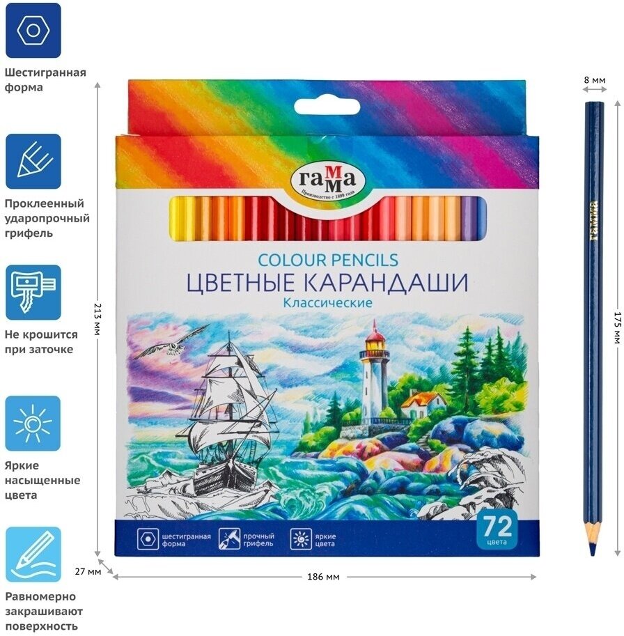 На сегодняшний день товар «Карандаши цветные "Классические" 72 цвета (210119_02) ГАММА» можно купить с кешбеком в 1 магазине: Яндекс.Маркет