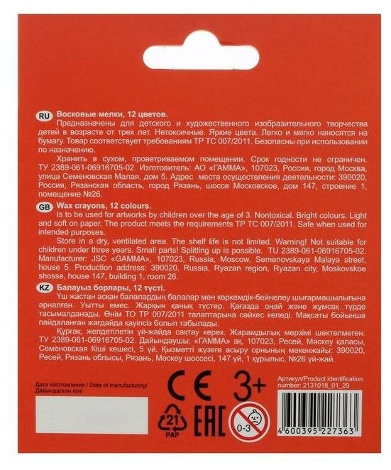 Сервис сравнения цен СкидкаГИД предлагает сравнить цены на товар «Мелки восковые "Мультики" (12 цветов) (2131018_01_29) ГАММА»