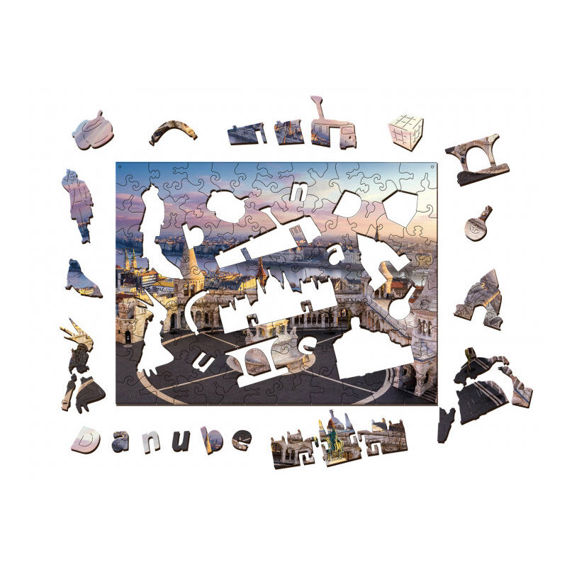 Фигурные пазлы Citypuzzles - это пазлы с деталями причудливой формы. При этом часть элементов выполнены в форме предметов, относящихся к теме основной картинки. В данном случае, это предметы и памятники, ассоциирующиеся с Будапештом. Часть таких элементов целые, часть складывается из нескольких деталей. Детали пазла выполнены из фанеры. Изображение с помощью специального принтера нанесено прямо на дерево (самый прочный вариант). Такие необычные пазлы понравятся и детям и взрослым. Даже те, кто не любят собирать классические пазлы, будут с интересом рассматривать и стыковать фигурные детали.