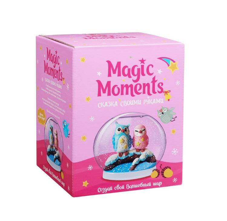 Создайте чудесный маленький мир внутри волшебного шара: милых совушек, сидящих на ветке в заснеженном лесу. В наборе вы найдете все необходимое, чтобы создать свой Волшебный шар. Слепите фигурки, следуя простой пошаговой инструкции. Закрепите готовую композицию на подставке, добавьте в сферу воду, блестки и специальные жидкости. Волшебный шар готов!