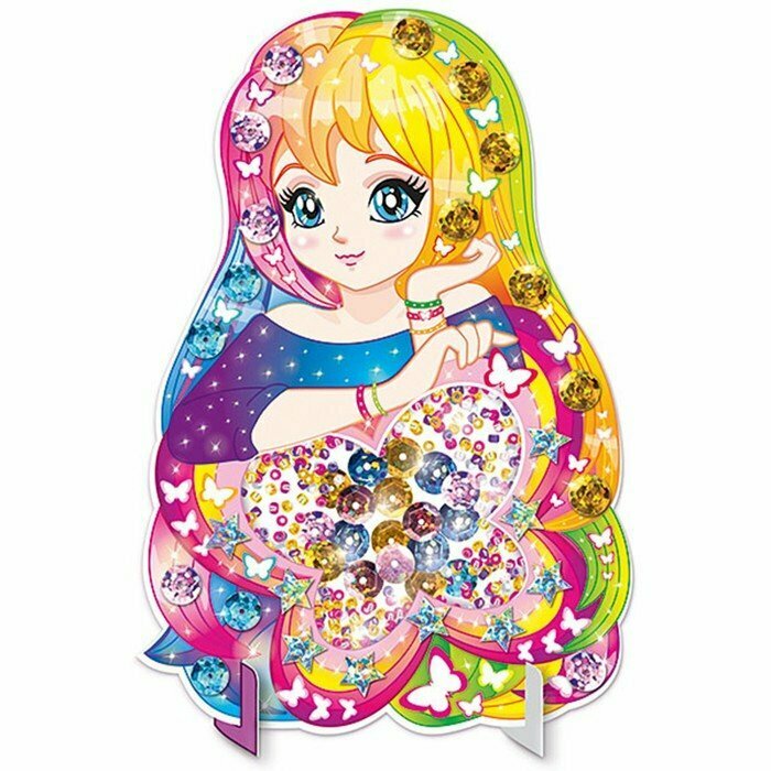 Фигурка очаровательной феи-"аниме" с радужной бабочкой, декорированная голографическими стикерами и блестящими пайетками, - это сверкающее чудо, сделанное своими руками!