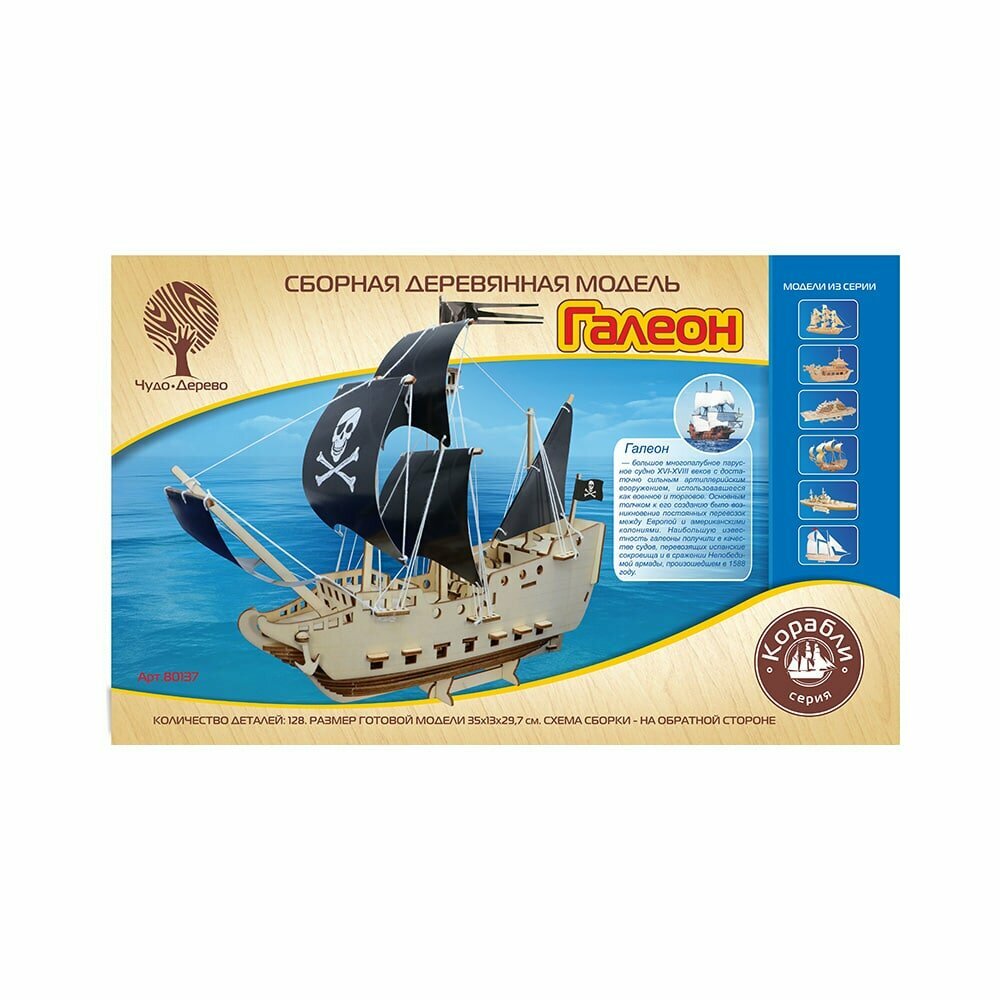 Сборная деревянная модель Галеон из экологически чистой древесины.
