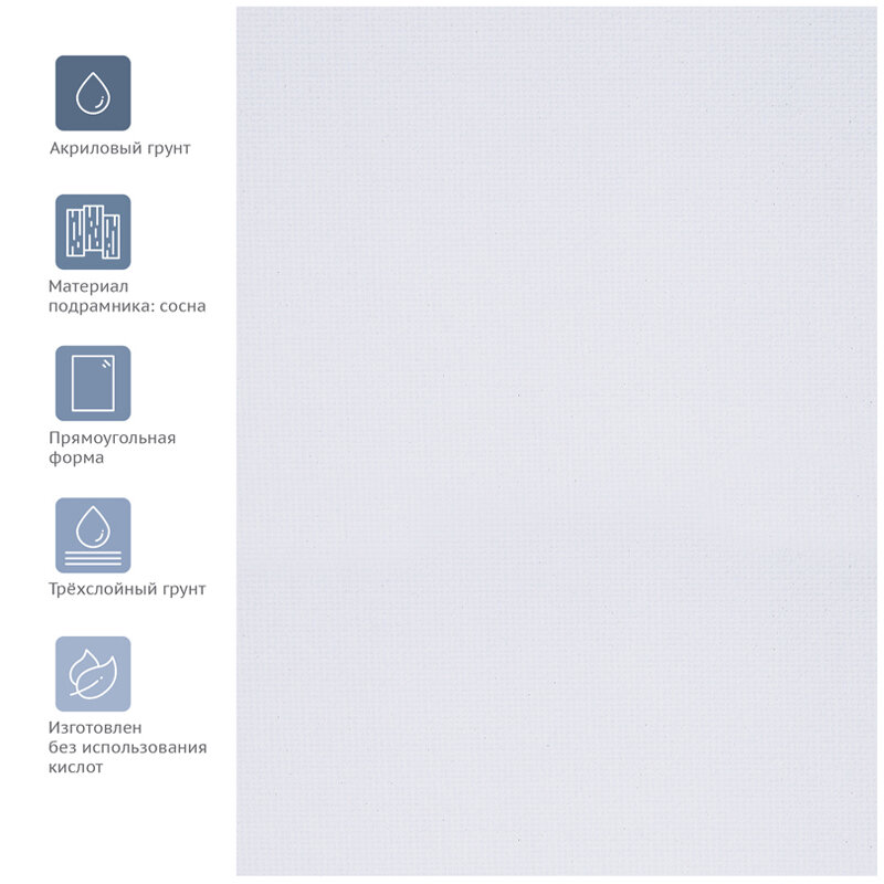 Холст покрыт акриловым грунтом, предназначен для живописи масляными, акриловыми, темперными красками.