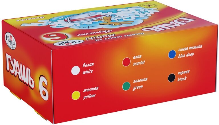 Гуашь 6 цветов "Мультики" 40 мл (221030Н) ГАММА