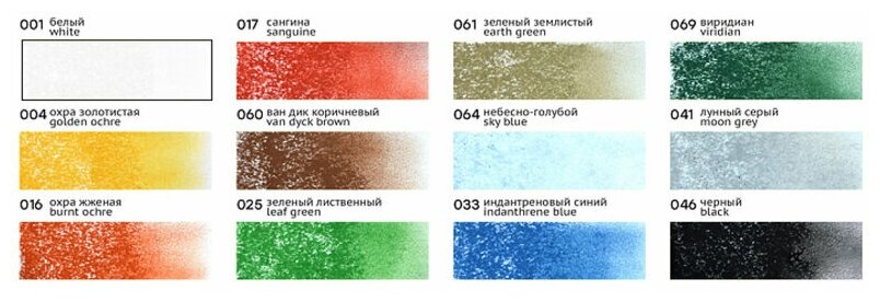 Сухая пастель — чистый пигмент, смешанный с водорастворимым связующим. Мягко ложится, не царапает бумагу, оставляет матовый бархатистый штрих. Пастель легко смешивается и растушевывается, позволяя создавать тональные переходы. Цвета в наборе подобраны для создания пейзажей: большой выбор зеленых и земляных оттенков.