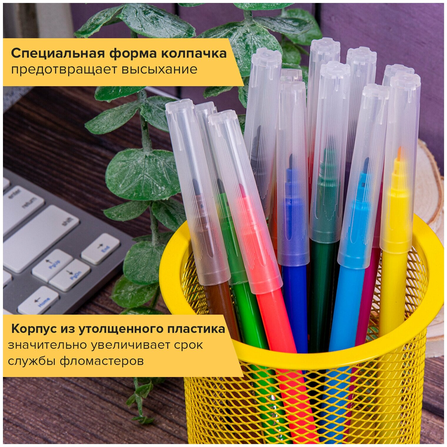 Имеют удобную круглую форму. Длина корпуса — 150 мм, диаметр — 8,2 мм. Благодаря линии письма 1-2 мм процесс раскрашивания становится легким и приятным. Быстросохнущие чернила предотвращают смазывание рисунка. Благодаря полипропиленовому корпусу срок службы фломастеров значительно увеличивается. Колпачок имеет специальные прорези для вентиляции. Фломастеры обладают экономным расходом чернил, при этом длина линии письма достигает 500 метров. Рекомендованы для детей от 3-х лет. Рисование фломастерами BRAUBERG «PREMIUM» способствует развитию воображения, мелкой моторики рук у детей, координации движений кистей и пальцев и повышает способность концентрироваться и фокусировать внимание.