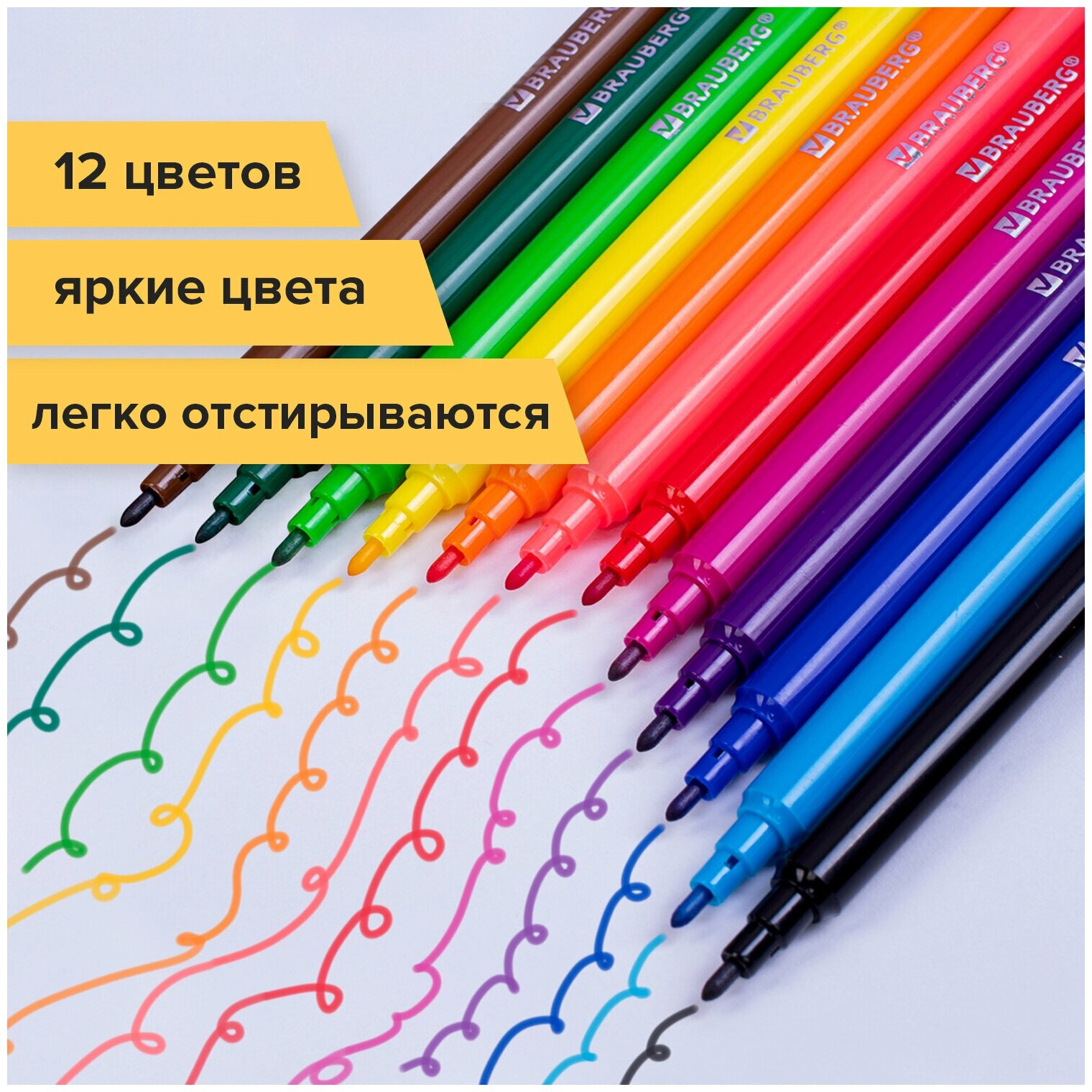 Фломастеры 12 цветов КЛАССИЧЕСКИЕ (151934) Brauberg