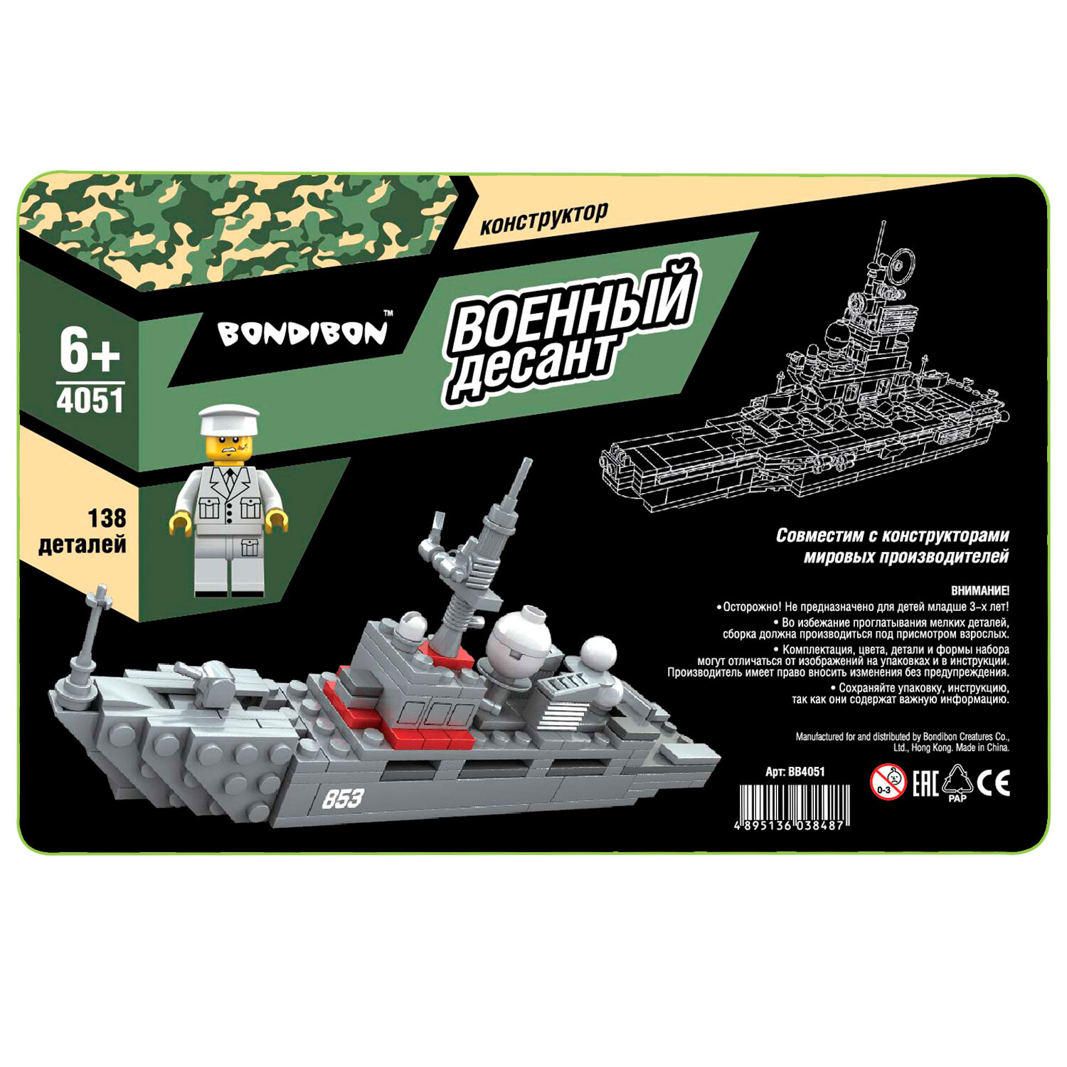 На сегодняшний день товар «Конструктор "Военный Десант Корабль" 138 деталей (ВВ4051) Bondibon» можно купить с кешбеком в 1 магазине: Яндекс.Маркет