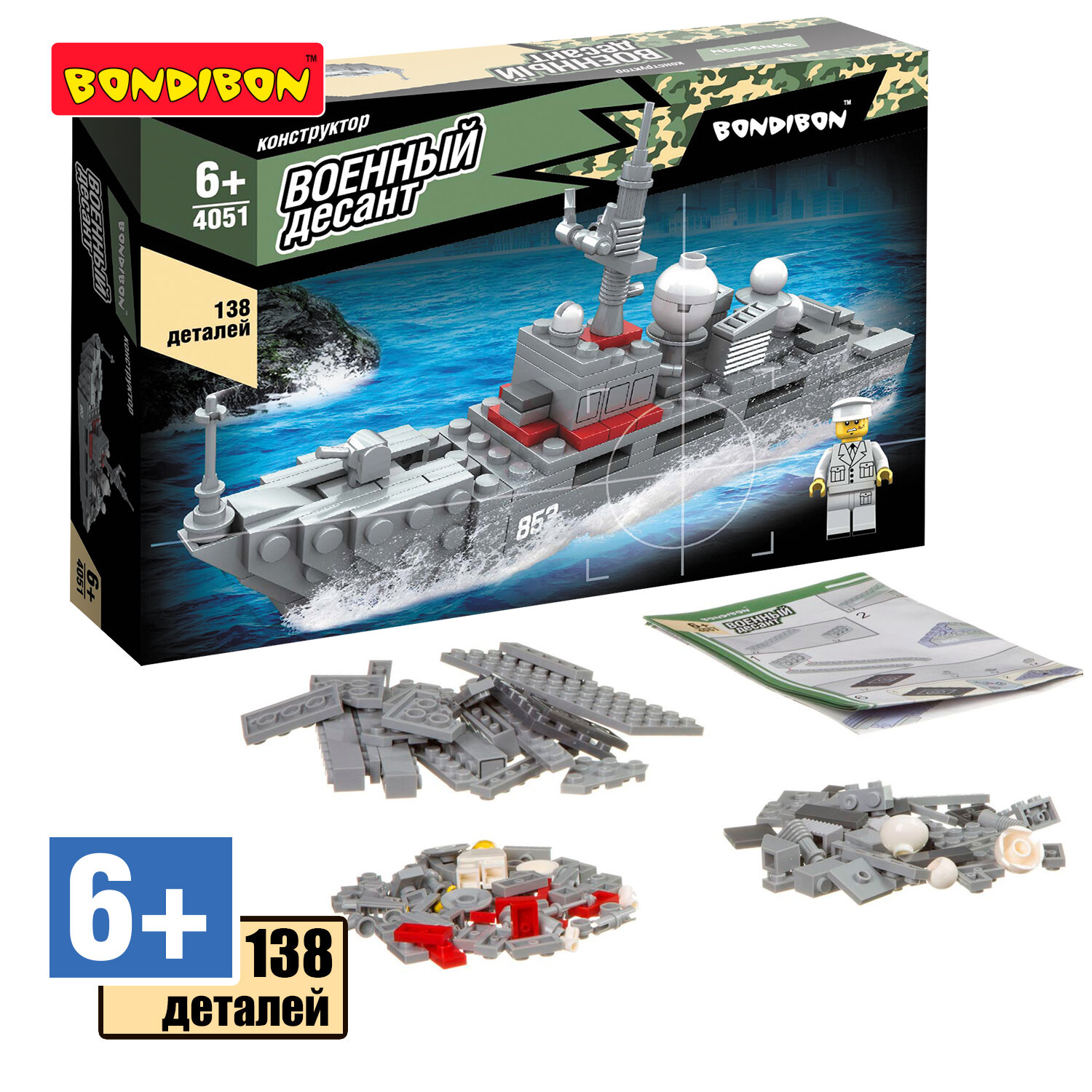 Конструктор "Военный Десант Корабль" 138 деталей (ВВ4051) Bondibon