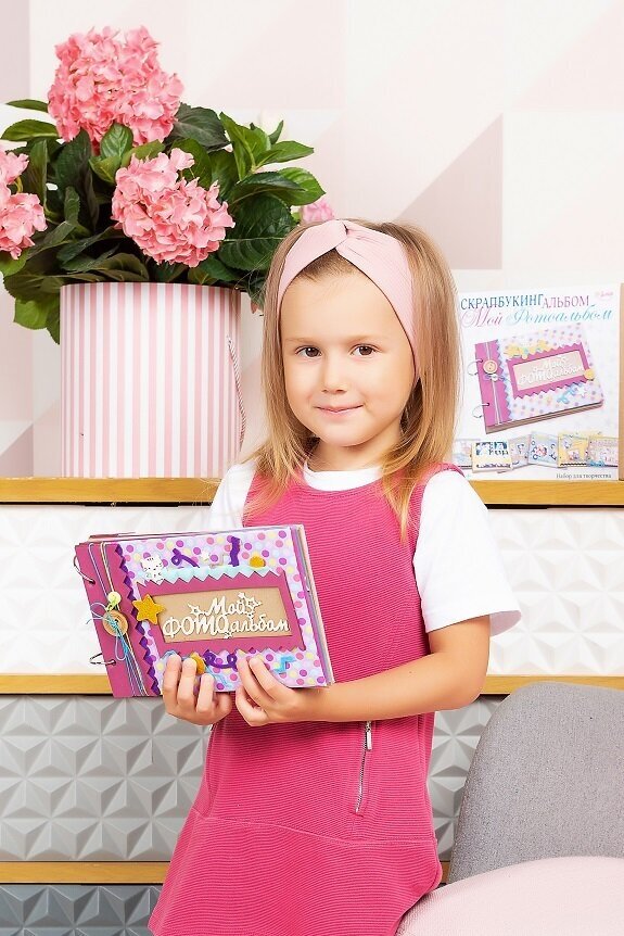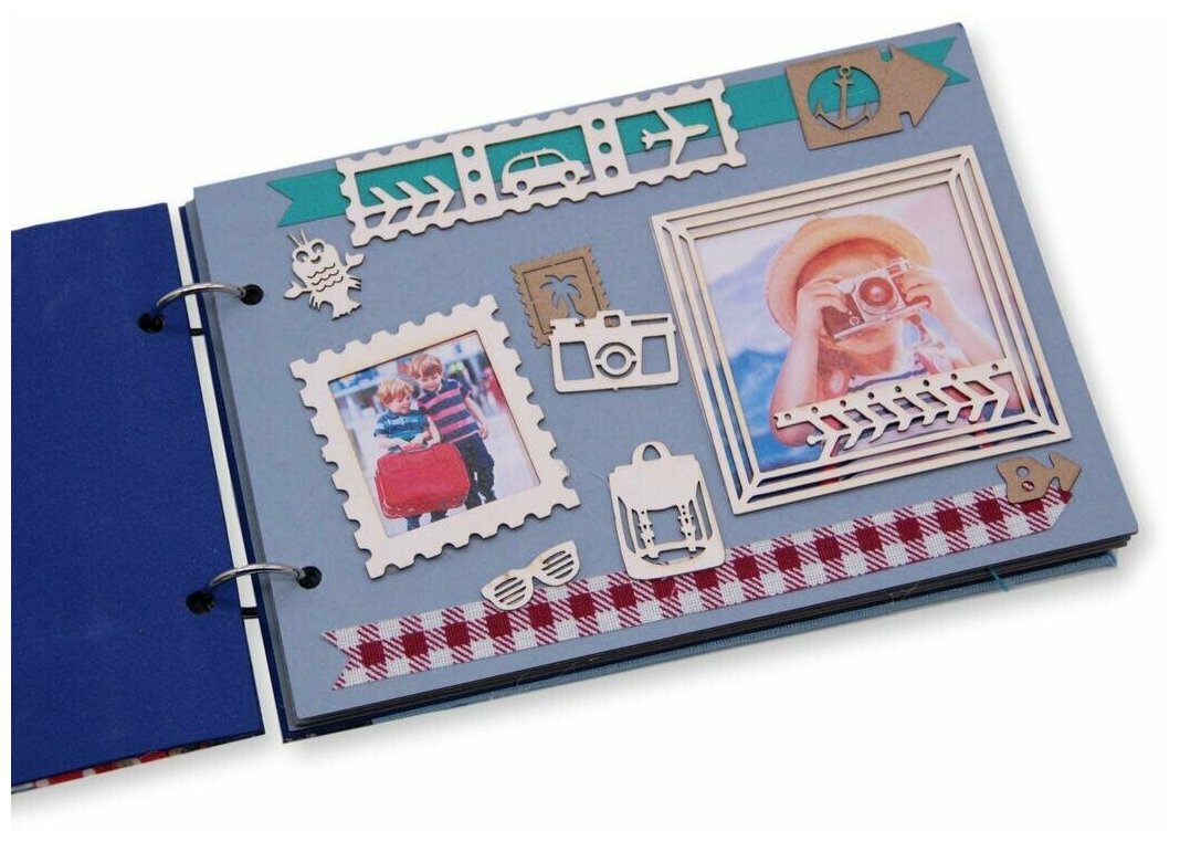 Набор в стиле скрапбукинг – это оригинальная техника декорирования и оформления необычных фотоальбомов, а также ежедневников, блокнотов и многого другого. О наборе:Набор позволяет сделать свой собственный фотоальбом, украсив его оригинальными декоративными элементами. Цветная бумага пригодится для яркой аппликации, многочисленные заготовки из ЭВА сделают рисунки объемными, декор из фетра добавит в оформление уюта.Также в комплекте подробная инструкция, но можно придумать свои варианты декора, используя материалы из набора.Работа с ЭВА.Эва мягкий материал на клеящейся основе. Просто снимите с обратной стороны пленку и приклейте заготовку в нужное Вами место.Работа с фетром.Нанесите клей на фетровую заготовку. С помощью кисточки (не входит в набор) разровняйте клей по всей поверхности. Дайте немного подсохнуть. Приклейте заготовку в нужное место. Для удобства и прочности изделия рекомендуем использовать клеевой пистолет.Состав:Детали из МДФ, детали из ЕВА, детали из фетра, бумаги, ткани, картона