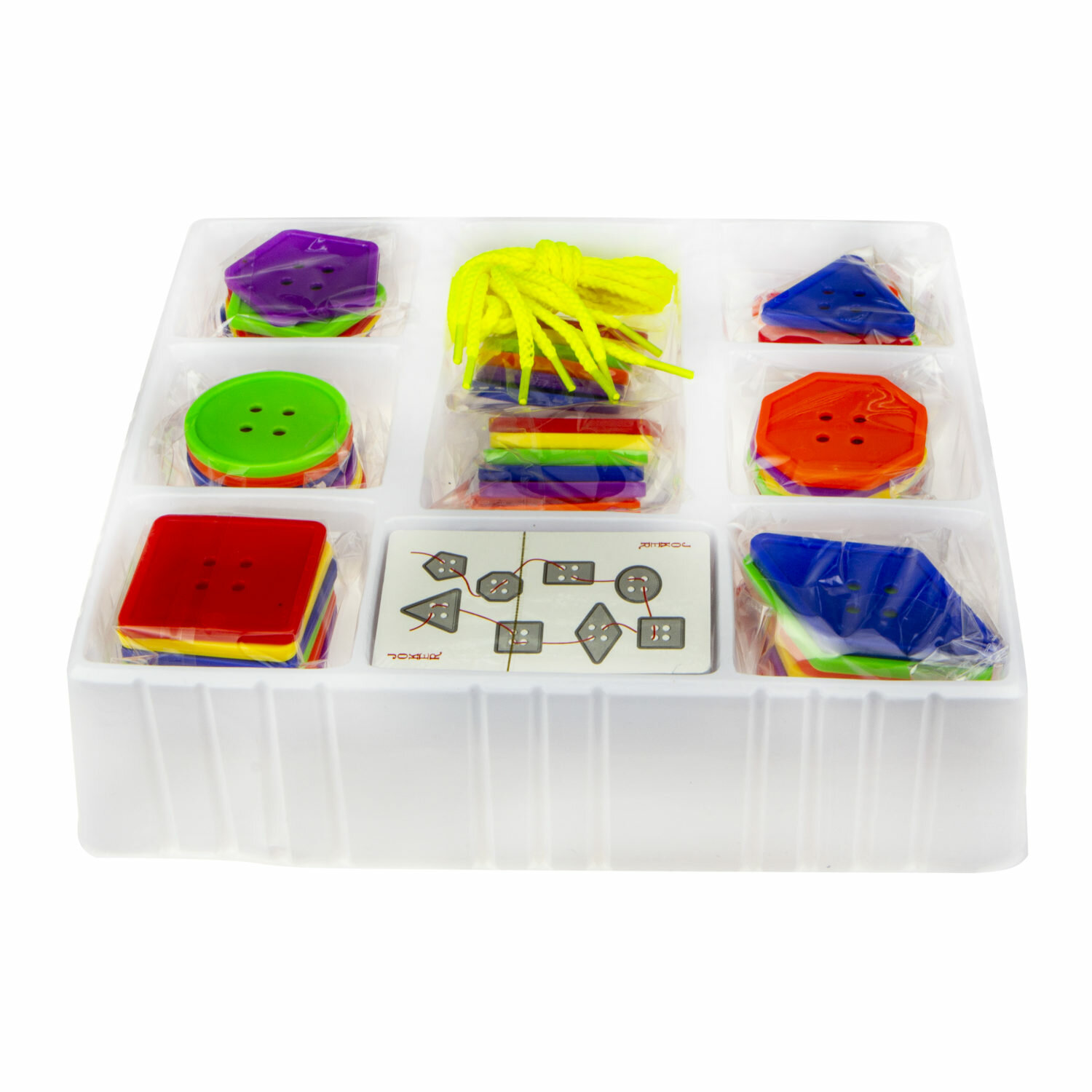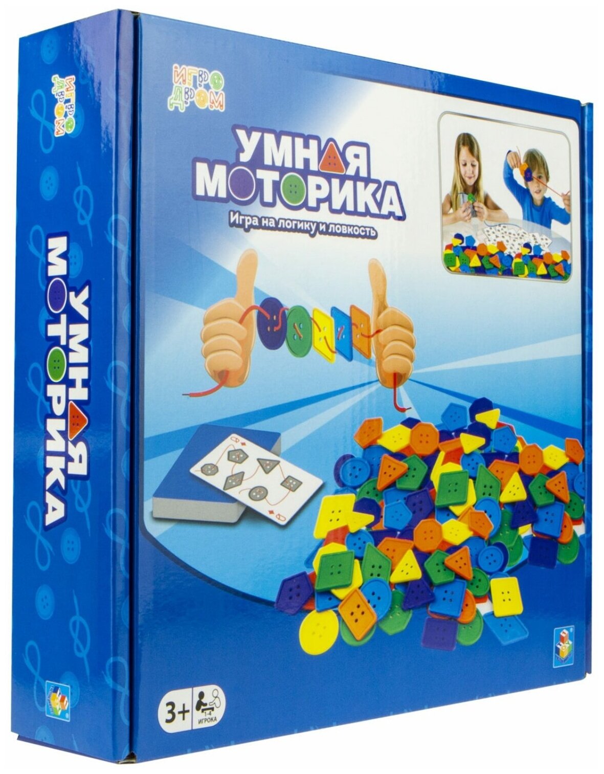 Уникальная серия игр ИГРОДРОМА, которая поможет вашему ребенку в игровой форме развивать свои интеллектуальные качества. Кто самый внимательный и ловкий? Тот, кто быстрее всех соберет пуговки правильной формы и нужного цвета на свой шнурок, согласно выпавшему заданию на карточке. Развивайте логику и ловкость, играя.