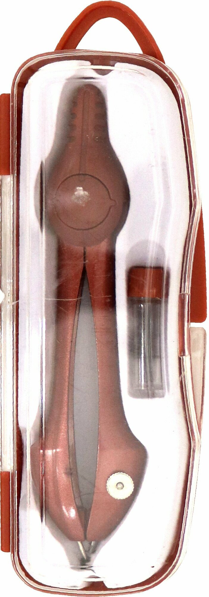 В комплекте 2 предмета: циркуль цельнометаллический 120 мм, запасные грифели в пенале.