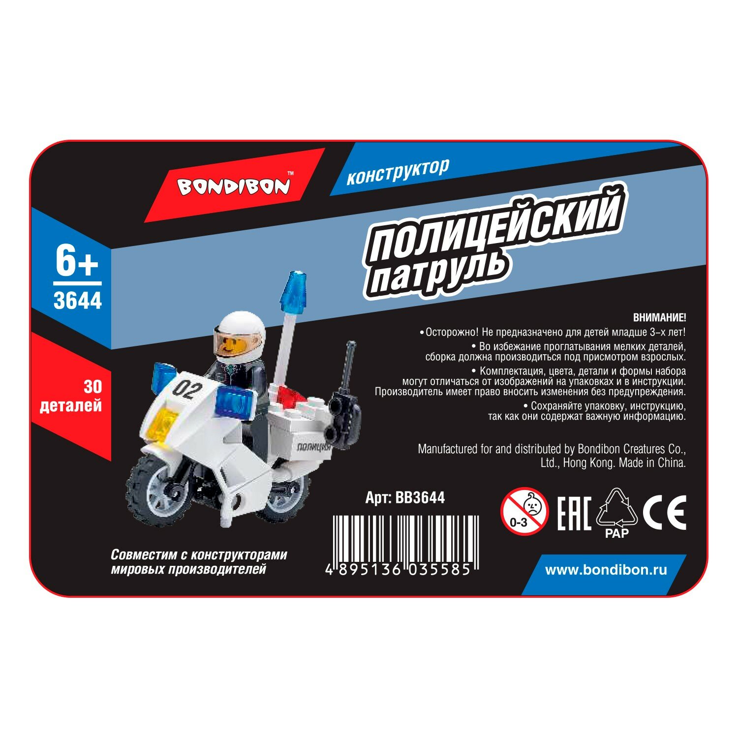Конструктор "Полицейский патруль. Мотоцикл" (30 деталей) (ВВ3644) Bondibon