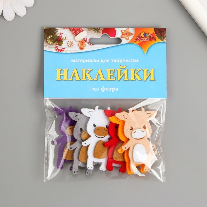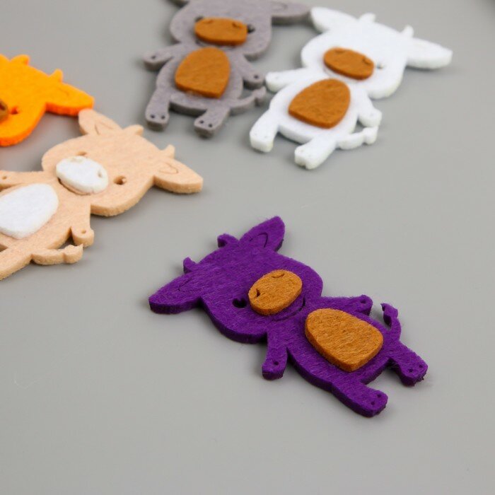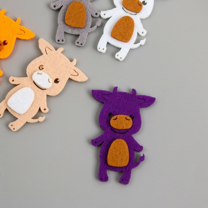 Символ года по традиции должен быть в каждом доме. Он принесёт удачу и поможет исполнить желания. В набор входит 6 милых бычков из фетра разного цвета и клеевые подушечки к ним. Бычки из фетра подойдут как для подарков родным, так и для новогоднего декора. Очень симпатичные и трогательные символы Нового 2021 года